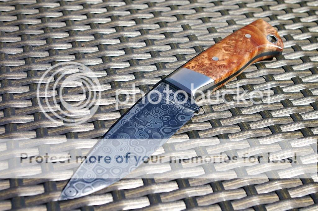 I'm feeling a little shaky posting here especially in the wake of Blade 2014 and among some of the most amazing makers in the world. But, here goes. I'm a new member who started making knives in September of 2013. I've always had a passion and actually made a knife when I was about 18 under the direction of a local knife maker. Then life happened. 28 years later I was introduced to a local maker who has a forge and makes his own Damascus. He invited me to try my hand at forging and I was hooked. To date I have made a total of 12 knives and am currently working on #13. I have to thank Cal Ganshorn for the opportunity and sharing his experience. Also, thanks to all the makers out there for the inspiration and the instruction they post on line. It really speeds up the learning curve. Here's a few of my latest.