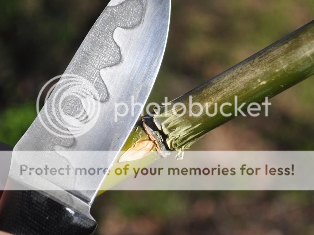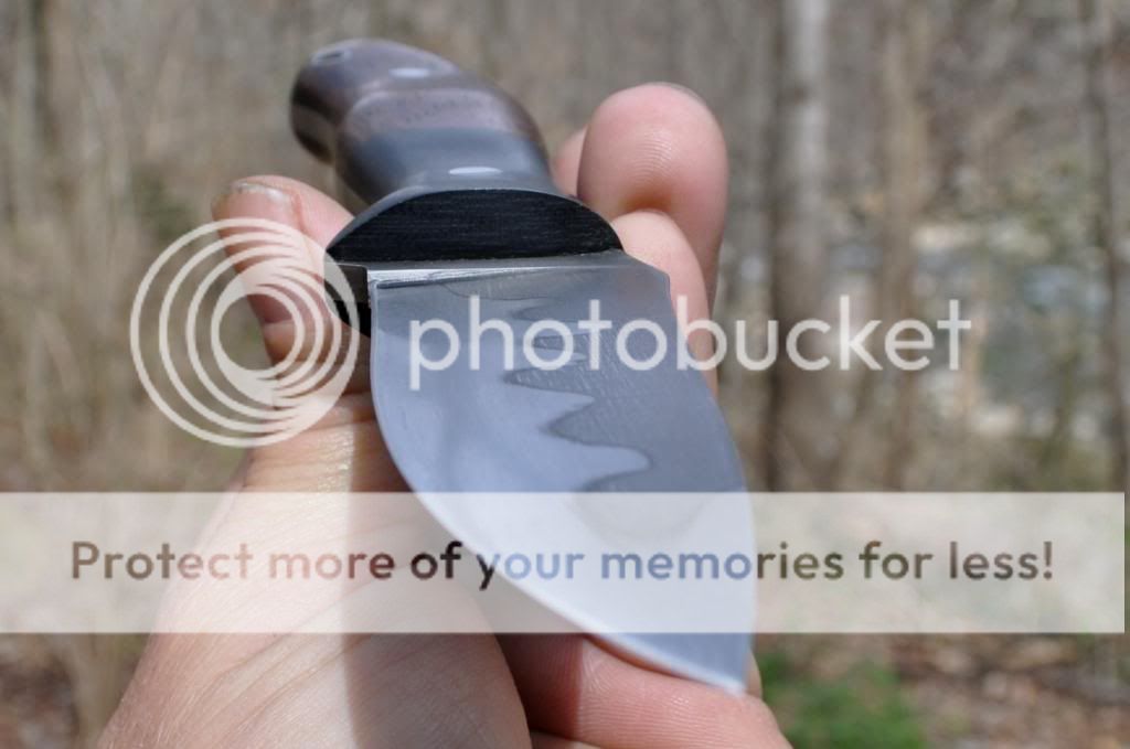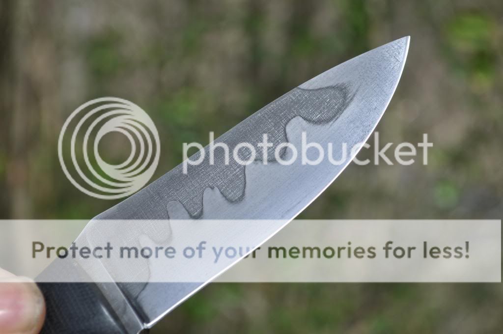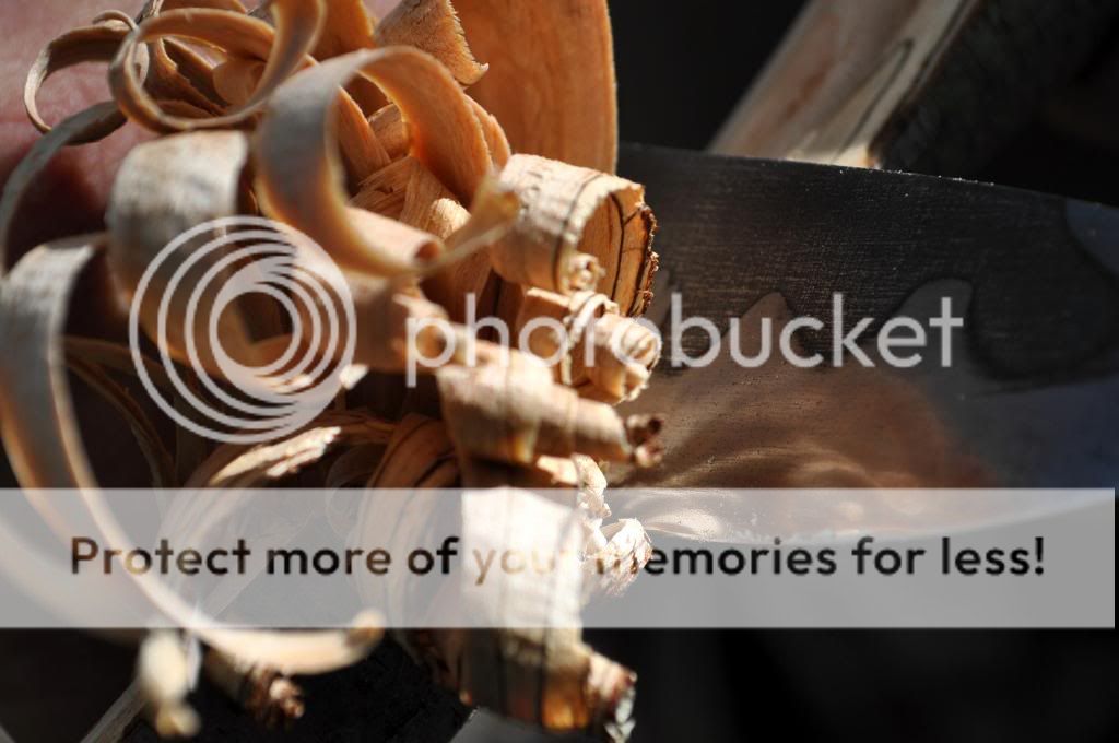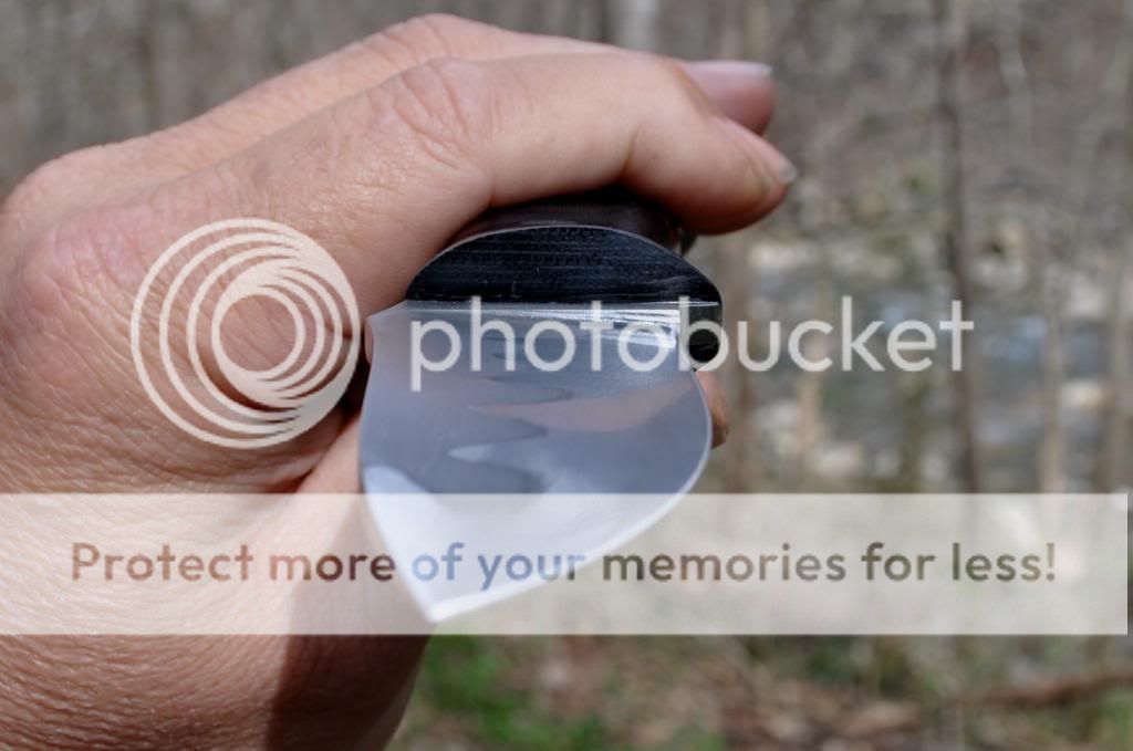 The knife has actually seen a lot more use than is represented in the photos here, and I have found it to be very comfortable in use over long periods with no hot spots that I have found so far. The handle is nice and smooth, but contoured for a secure purchase. The balance is just behind the first finger so just a little handle heavy, which is actually fine for me for a knife for more utilitarian type uses, but once he starts tapering tangs he's really going to be onto something! I am not sure what the RC is on it, but it has held an edge well through a good bit of cutting and whittling, and showed only minimal damage from several strikings of fire steels. What damage was done was pretty easily taken care of with a small stone in the field. All and all I really like the knife a lot, and am really happy with Matt's workmanship. I will definitely be keeping a close eye on his work in the future and look forward to watching him progresses in his craft.