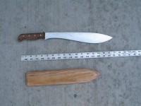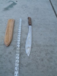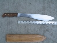 Here's a machete I made for my Mom's Cousin's Husband. I know I need to finish my blades a little better, but this one sure works well. O-1 blade with black walnut handles.
