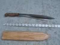 I was going for a boloish feel with this one. 18 inches long is about the limit for me now, so I wanted it weighted forward. This is my first machete, and I really like how it turned out! I like having that recurve with the forward swell. It feels like it really bites into whatever you're chopping up!