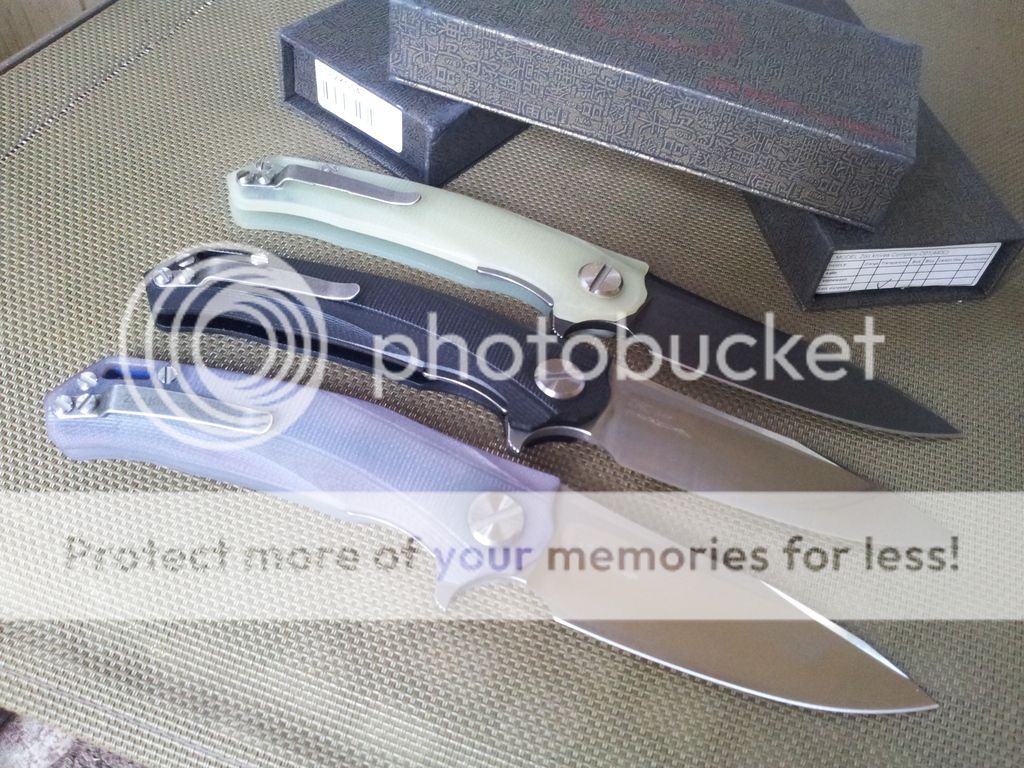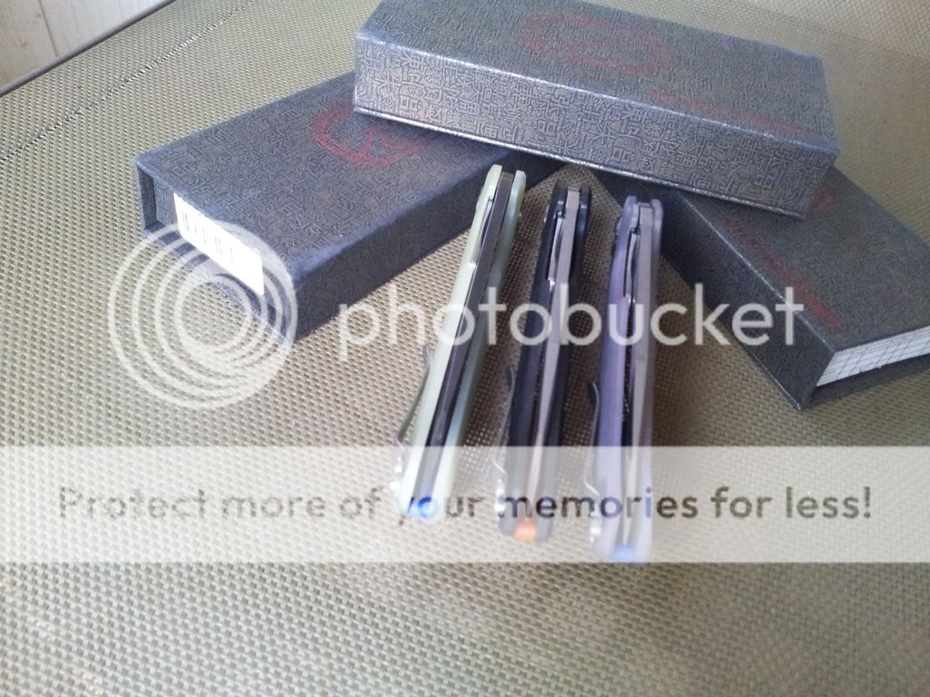 A trio of Stedemon D-01 Flippers for sale. All brand new in box, save for a few fun action flips. Amazing Ball Bearing flippers! 5" closed with a 4" blade. All 3 perfectly centered with solid early lock up.