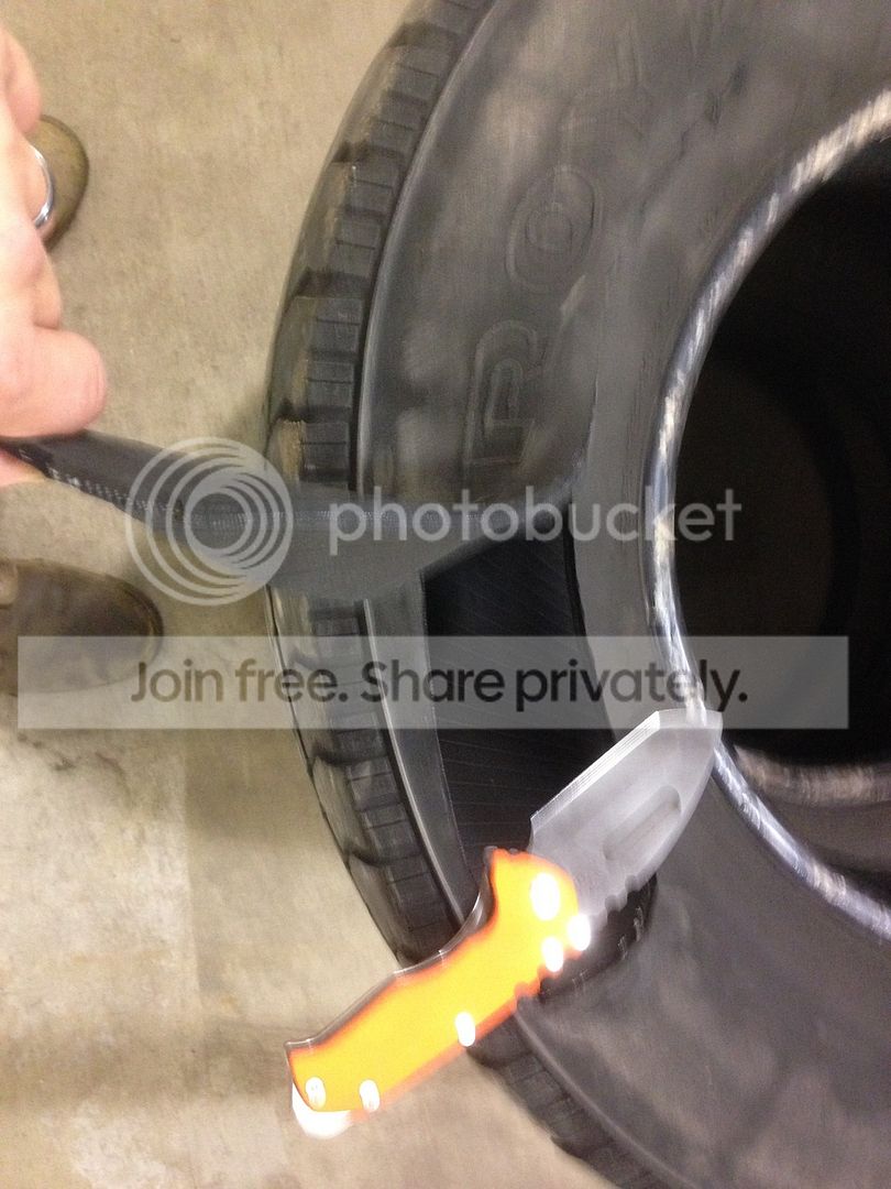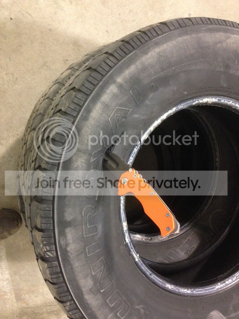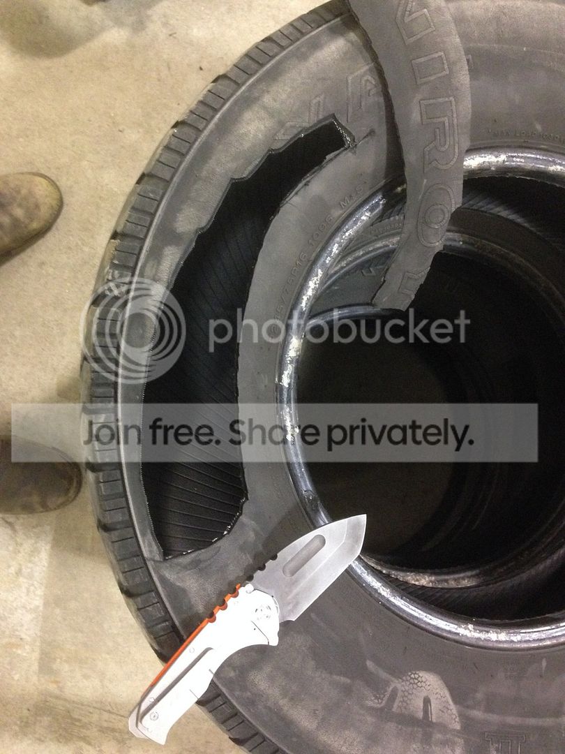 Anyhow, once I was able to get the knife through, the hollow grind sliced the tire up with ease.
