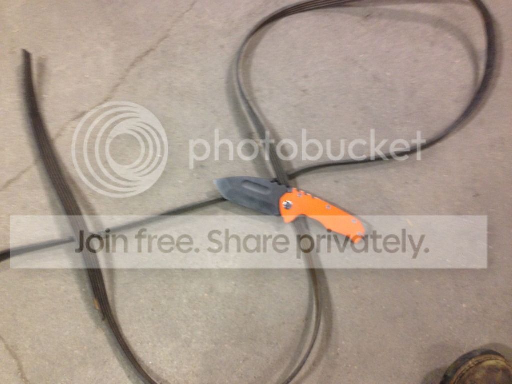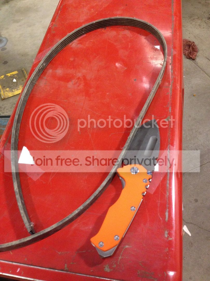 Also had some serpentine belts to toss in the trash, so I figured I would see how the Praetorian handled this. Serpentine belts have fiber cords inside of them for strength, sometimes making them difficult to cut. With these, I simply wrapped the belt around the blade while holding the knife in the reverse grip, then pulling back to make my cuts. Not an issue at all.