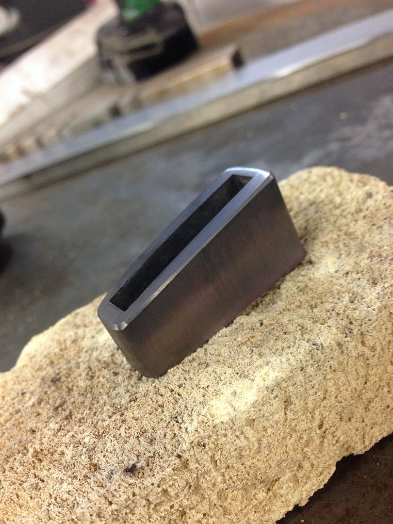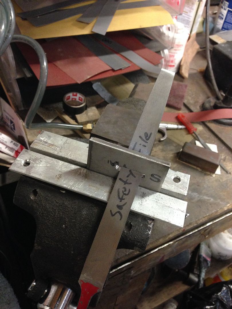 Truing up the bevels by hand. Since this is an air hardening steel, I can get the blade 95% before heat treat.