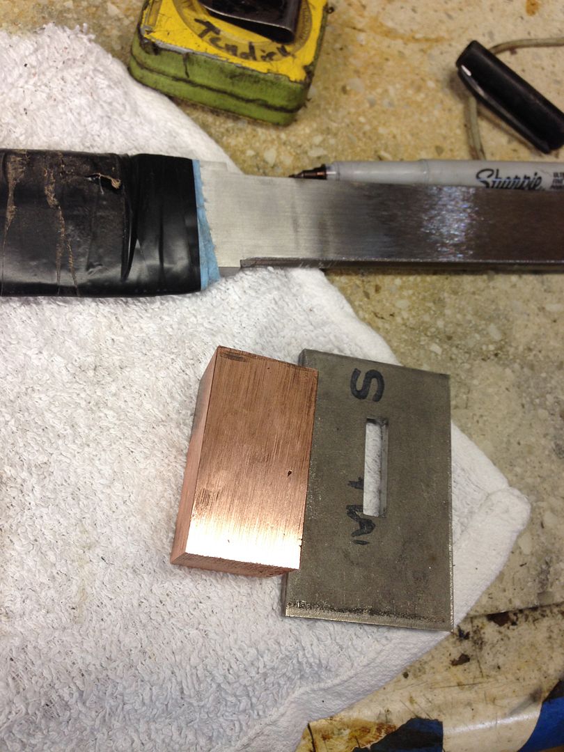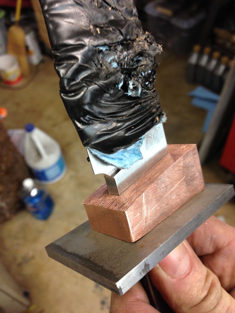 So here is the blade post hardening. It was sealed in a high temp stainless pouch and clamped between the aluminum plates to cool.