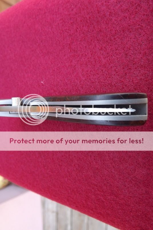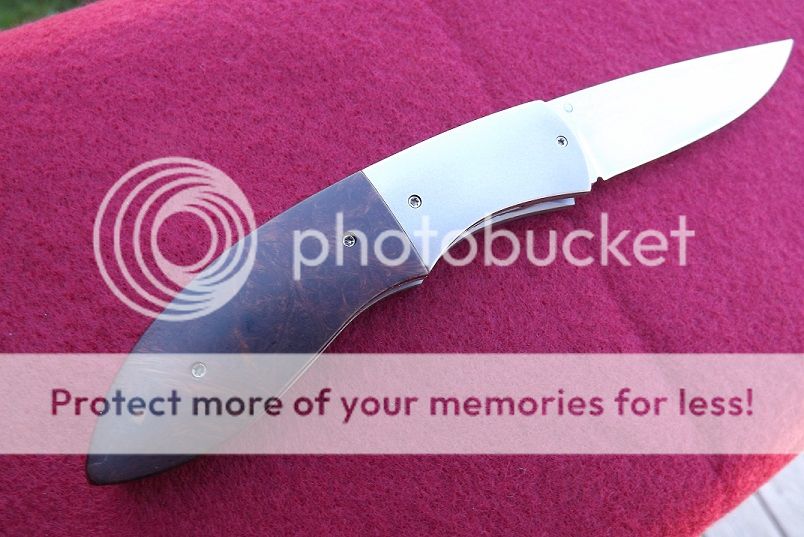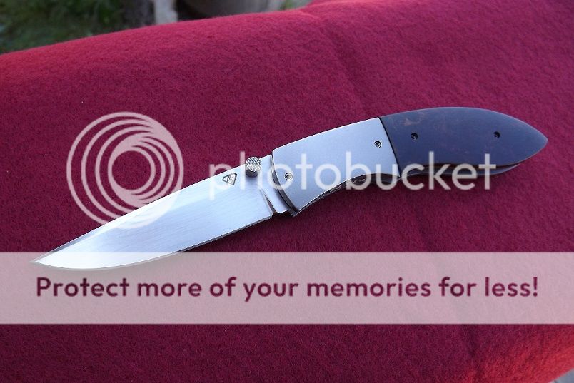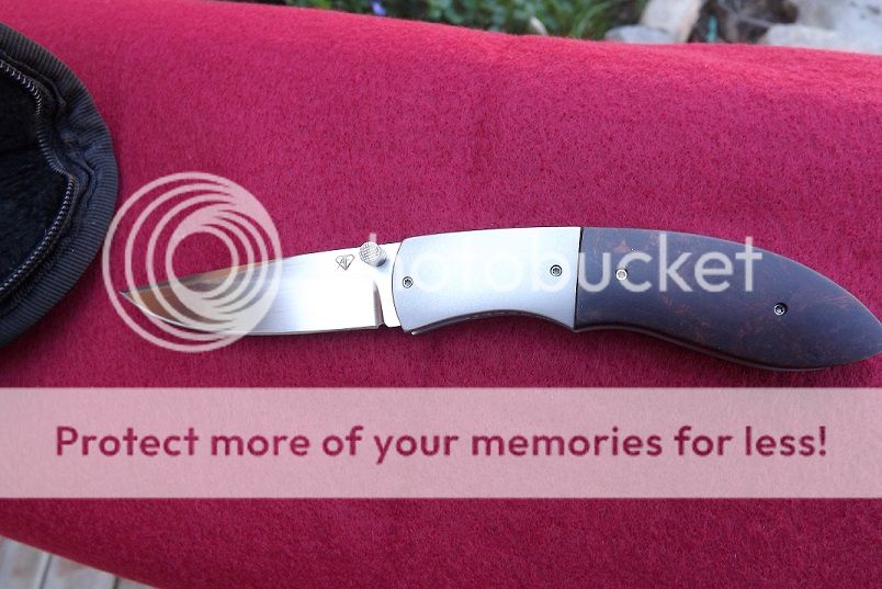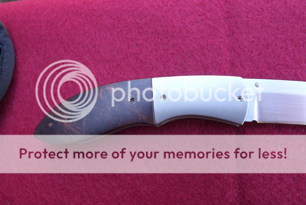 Titainim liner & bolsters, Ironwood scales. Lock up is nice & early, function is smooth!