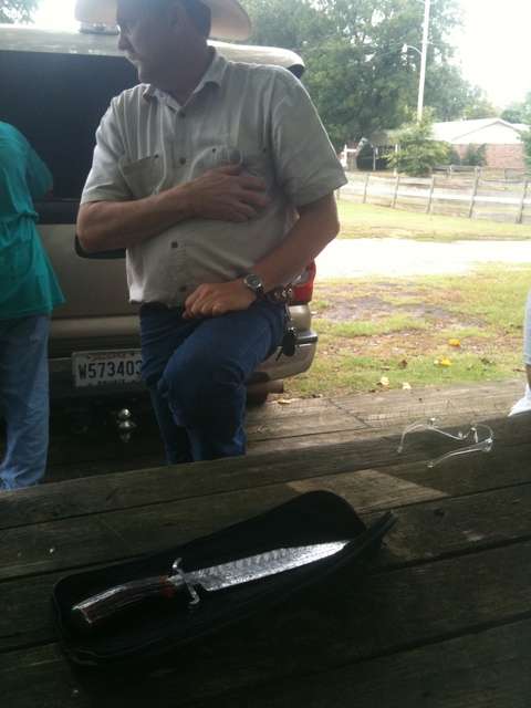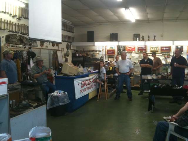 On Thursday evening some of us went to Kenny Rowe's and some of us went to the meeting over at Uncle Al's. I went to Uncle Al's and I had a good time seeing makers I hadn't seen in a while. There was some good BBQ and a flintknapping demonstration.