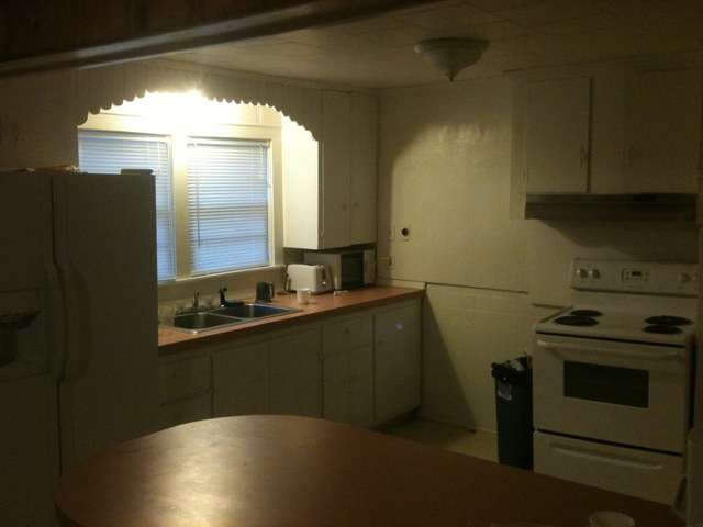 Here is a picture I wish I had before coming up. It is the kitchen in the bunkhouse. The kitchen has a refrigerator/freezer with an icemaker, a microwave, and an oven/stove. (Now you can plan your meals.)