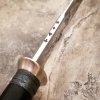Remember we did a mortise tang on this to make the pins around the perimeter functional instead of cosmetic? The pins will be peened in after shaping.