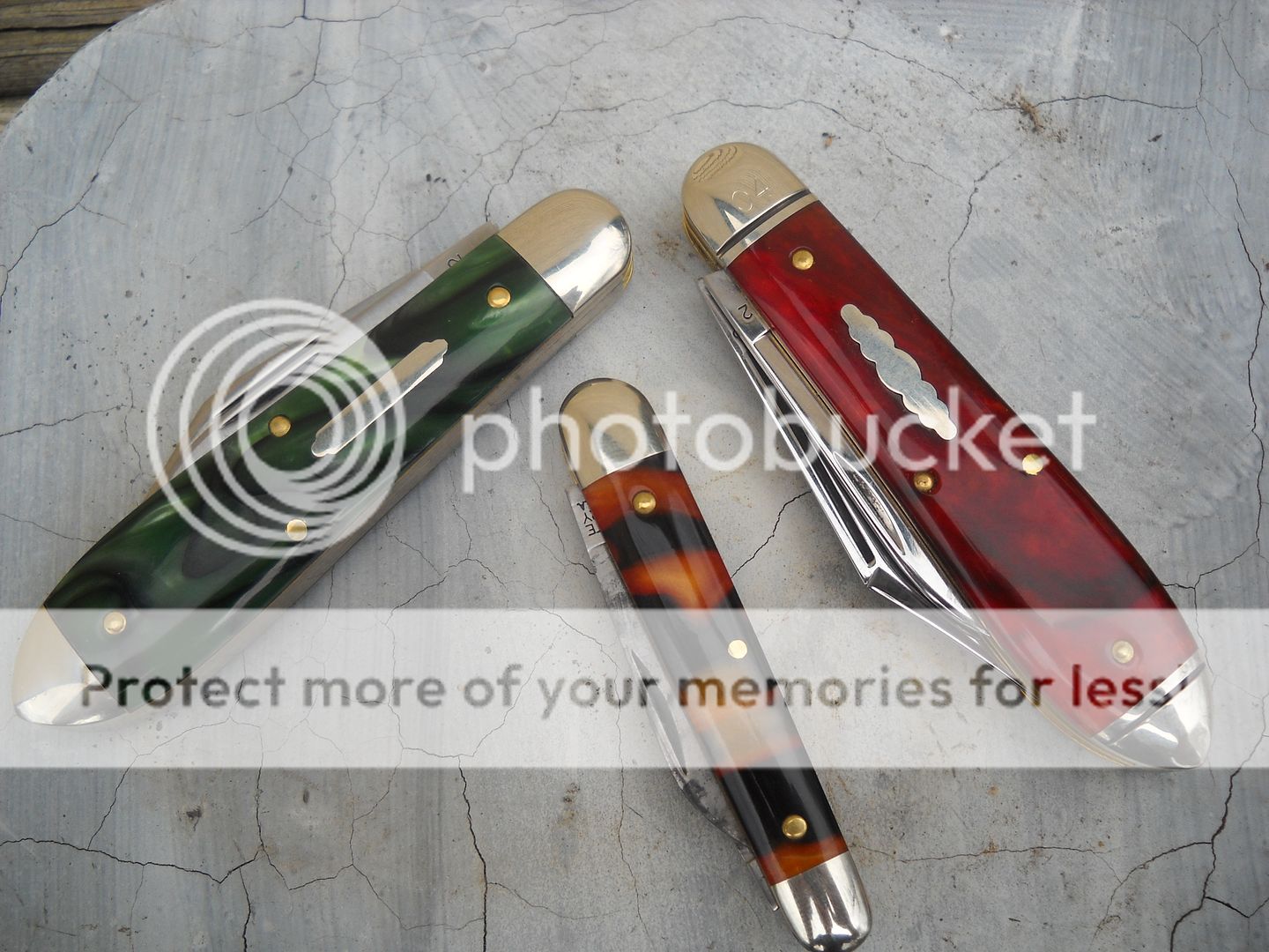 I must have missed this thread when it was first started. Lots of wonderful photos here. I only have one acrylic knife, shown below, and I was a little bit surprised by my reaction to the acrylic-covered knives shown here. I LOVE some of them, and I pretty much hate the others! I don't think there were any where I thought, "Yeah, that's OK." Very strong reaction one way or the other, which is not at all my reaction to most bone, stag, or wood knives. There are many aspects of my reactions to traditional folders that I can't explain.