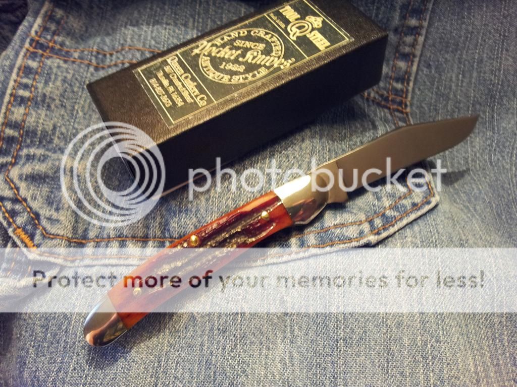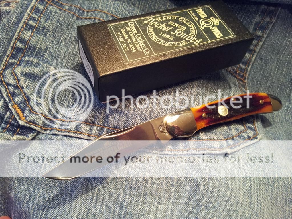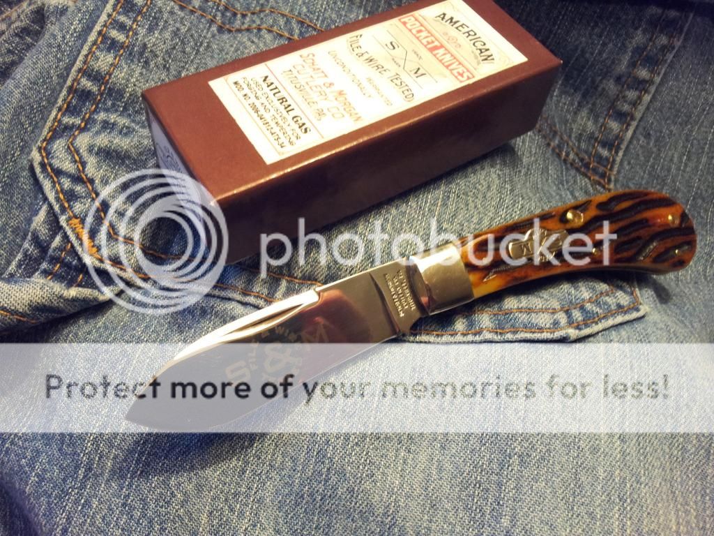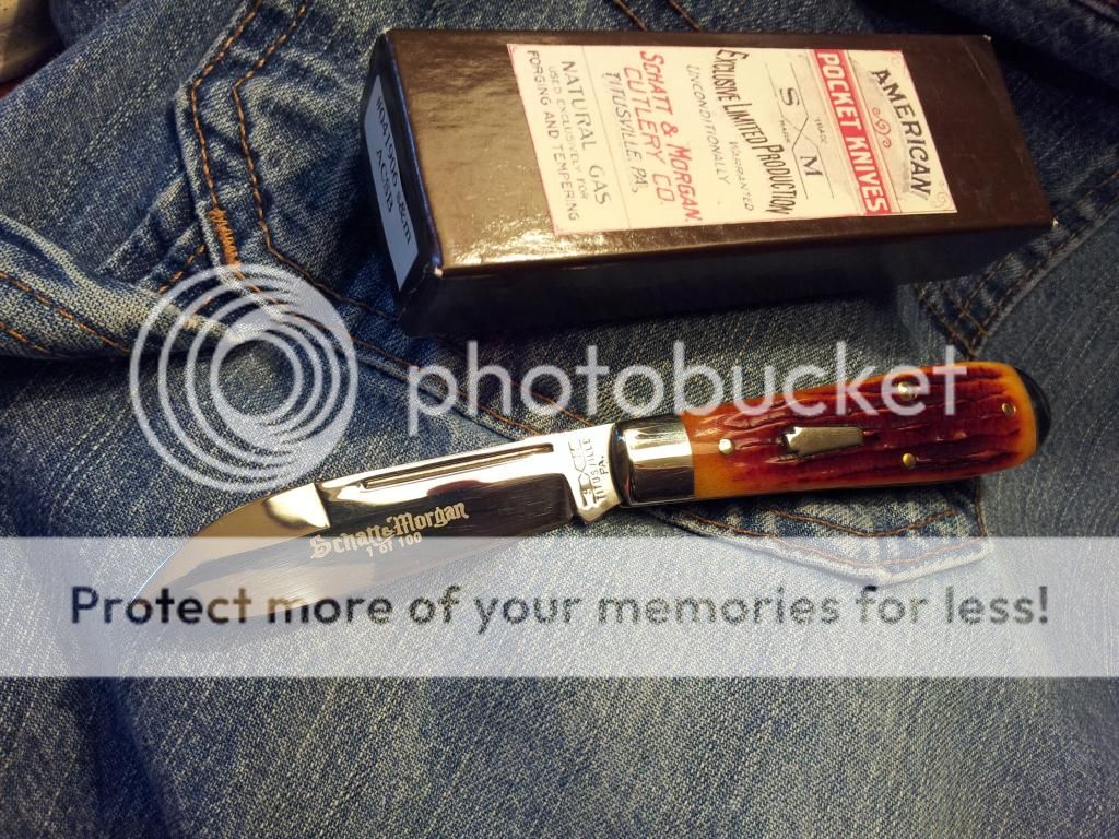 Schatt & Morgan Teardrop- Limited piece of a 100 knife run. 3.75" closed. Very nice amber scales. Carried a couple times but never used, opened a few times to awe at it. Great action. Pull is an easy 5 with strong snap. Wonderful finish on this one. Comes with box.....traded Shipped