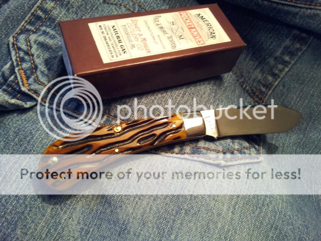Schatt & Morgan Shiner Pint- File & Wire series with ATS34 steel. 3.75" closed. Gorgeous worm grove scales. Carried a time or two but never used. Little gap on the bolster, everything else is nice and tight. Pull is about a 6 with strong snap. Perfect centering. Comes with box.....$80 Shipped