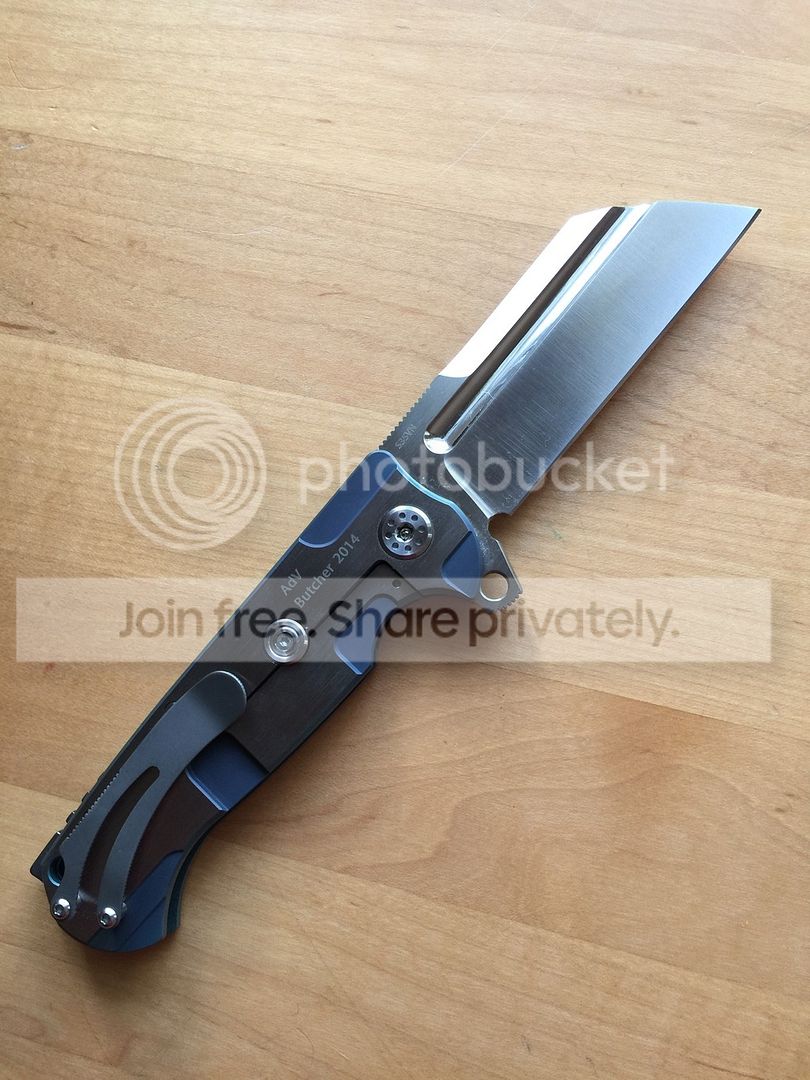 The ADV Butcher pushes a lot of my buttons - framelock bearing flipper with a large-ish blade in a straight edge. I've heard bad things about the attitude and practices of the maker, but that's not of as much concern to me as it is to some. I'm more about the knife.