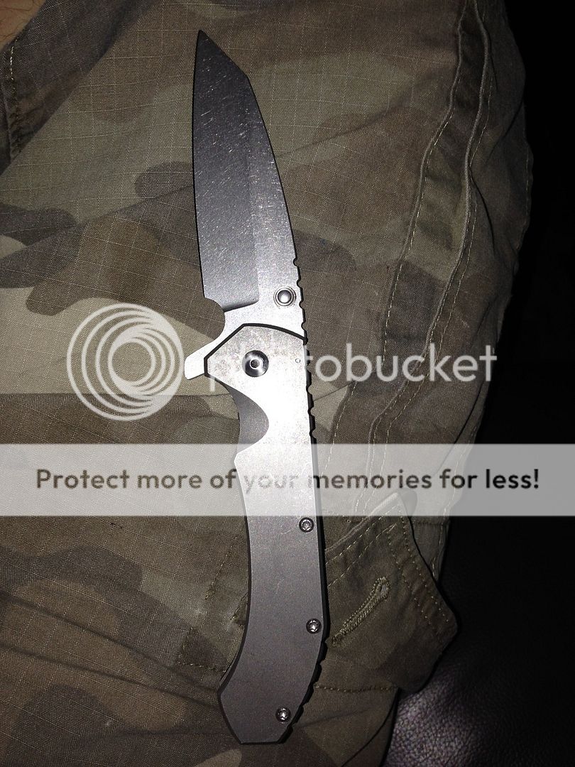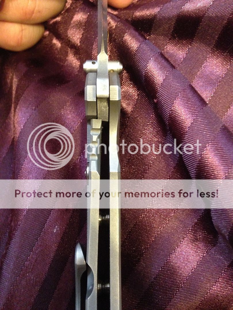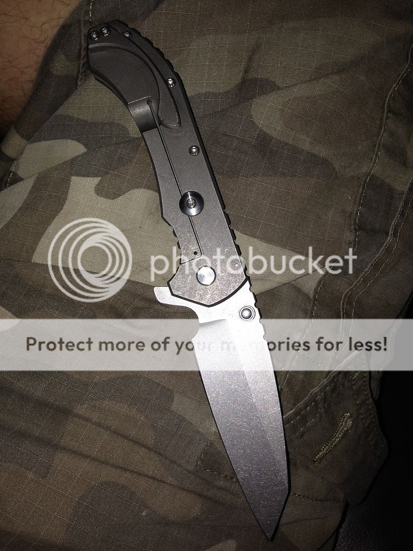 Have an aegis hoplite (version 2) with ceramic ball bearings, ceramic detent ball, and molded ti pocket clip. Not a fan of acid etching so I had it removed (except for on the spine) and then had it stonewashed. Great "working finish" Has been carried and used lightly.. Shows some slight wear on pocket clip. Super sharp cts-xhp 3.5" blade. Will touch up on sharpmaker before shipping, it gets crazy sharp. Feels great in hand, Amazingly smooth action with great detent (but not too stiff, blade flies out easily with push button or light switch method), blade falls free when lock is released, extremely solid lock up in all directions, and perfectly centered. (Hard to get pictured)