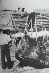 They cut some boards in an exibition showing how did coordinate both sawers in order to achieve the most correct planks.
