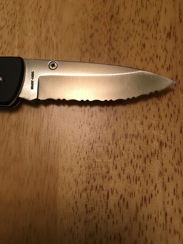 Highly polished factory finish and edge on blade and is razor sharp .