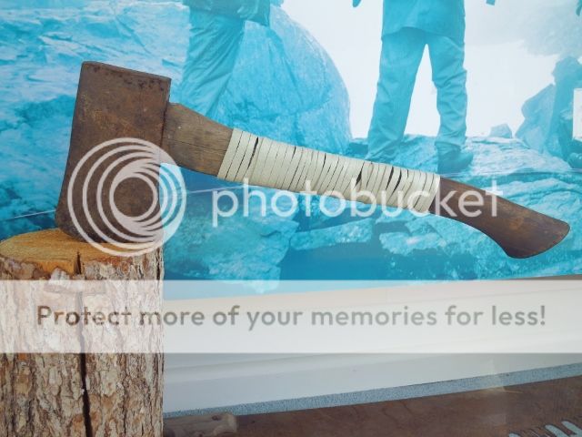 Old Axe in a store window. It has a 17 handle, but not sure what brand.