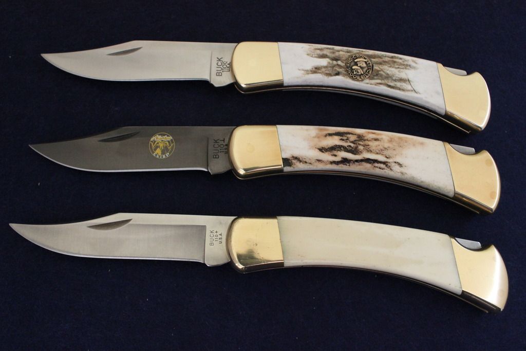 A fellow posted on the BCCI facebook page asking about a stag 110 that has the DLC (Buck Inc identified the coating), his knife is date coded upsidedown T 2004 MFG. His knife dose not have the pad printed Ram logo of the AG series knives and Buck Inc told him it must be a Proto of the 2006 issue from the AG 110 stags or a Buildout for a factory sale. I have 4 of the AG stag 110s and guess what, 3 have 2004 tang stamps and one has 2007? I bought two of these directly from Cabela's store in 06 and never noticed the 04 date on the blades and the third & fourth ones I got in trades with our members here on this site. The fellow asking dose not have a box or paperwork and when he got the knife it was not in an AG marked sheath.