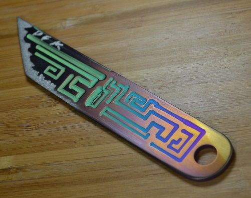 I was going through my inventory and realized I had never put this one up for grabs! The Alien writing pattern feels great in the hand and adds a nice contrast. It is nice and sleek for concealed carry or a low maintenance EDC.