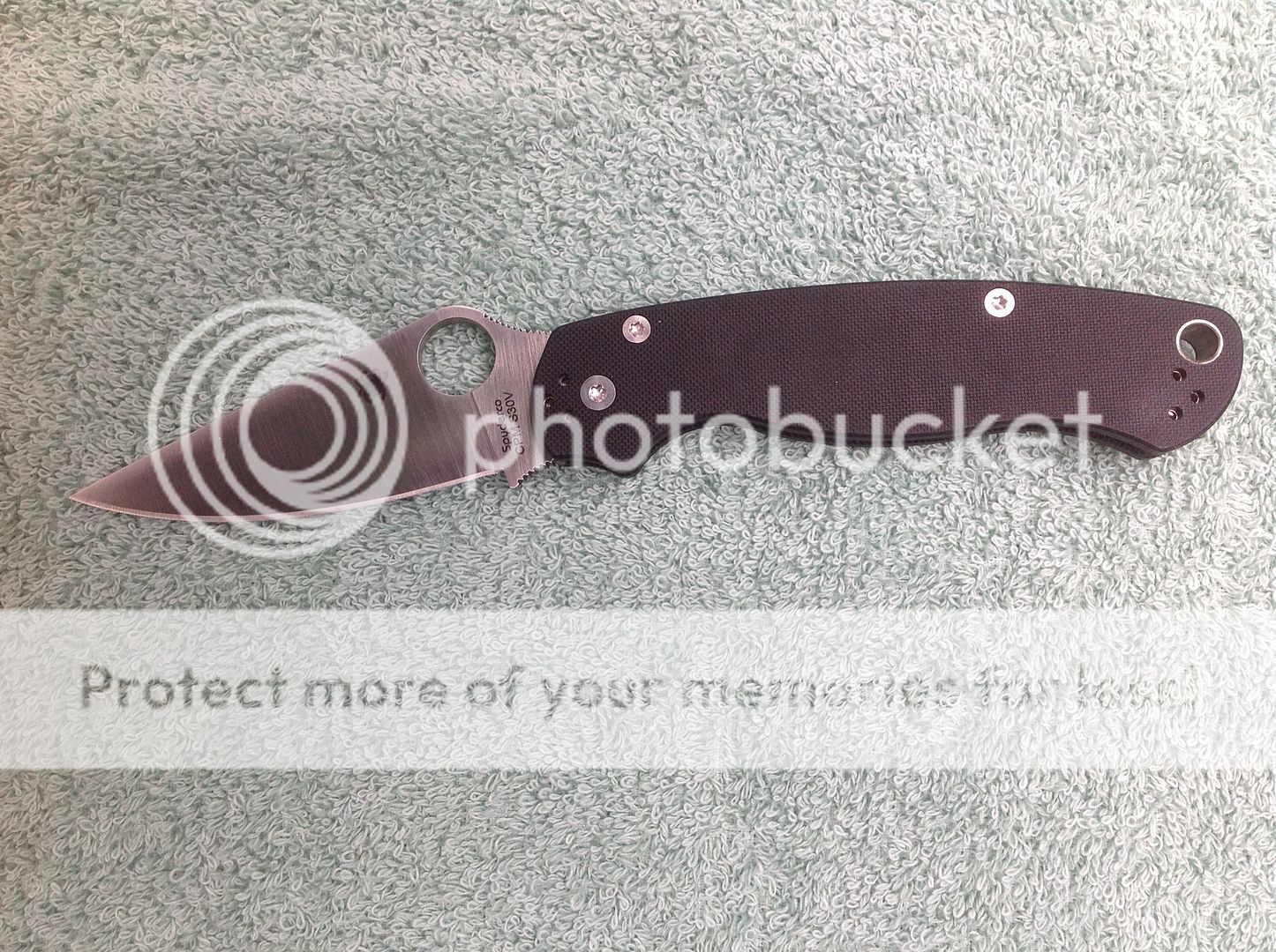SOLDSOLDSOLD to Mr. A..... Spyderco PM2, satin blade, black G10. Purchased a few days ago, BNIB from a trustworthy BF member. I've played with it but cut NOTHING....no hair, no paper, nothing. Nice early lockup, good blade centering and SHARP! (this is by far the sharpest factory Spyderco I've ever held, with beautiful, EVEN blade grinds....kudos, Spyderco!). With box, stock clip and Casey Lynch deep carry clip.