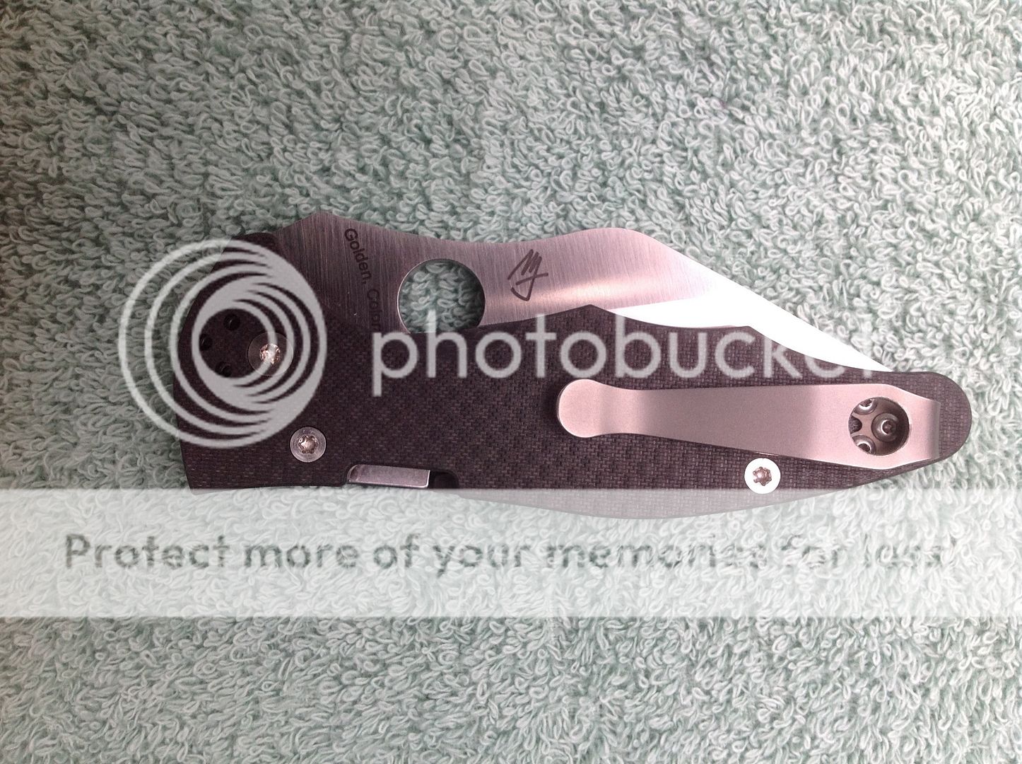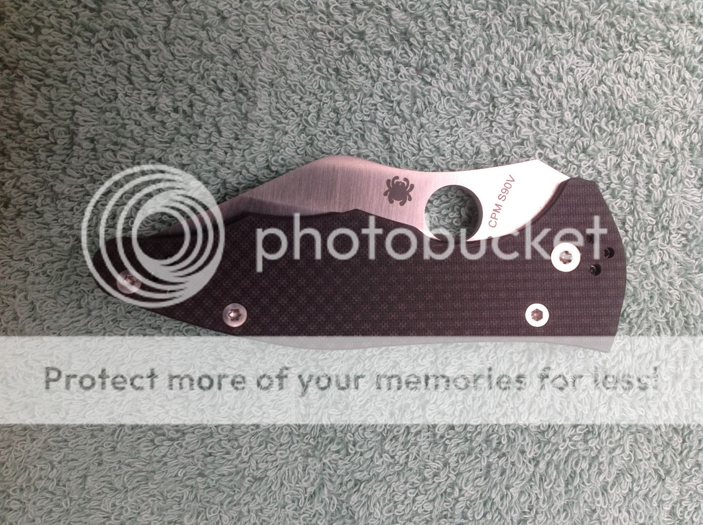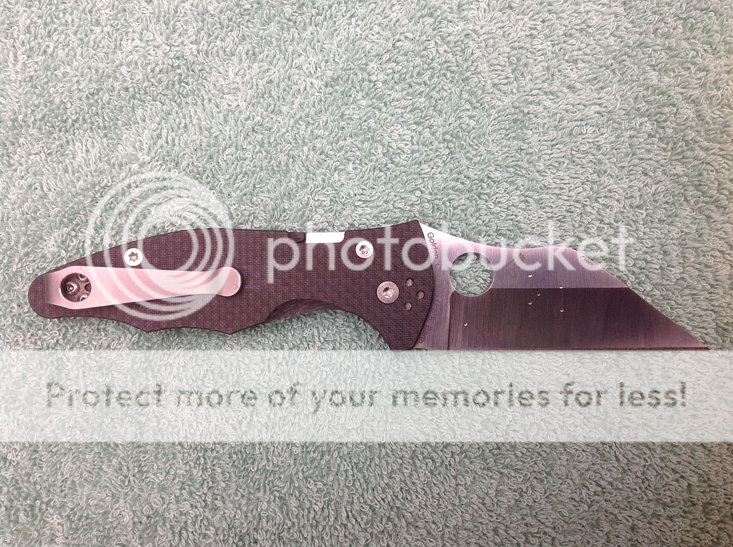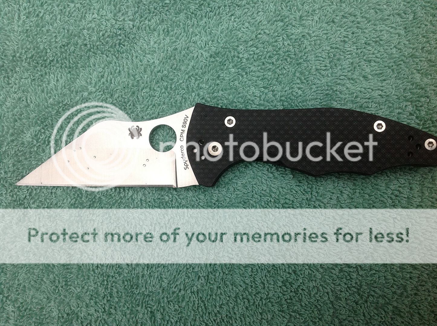 SOLDSOLDSOLD....1) Spyderco Yojimbo II S90v....purchased brand new by myself from KW for $200. Never really used, 'cept maybe an envelope or two, but I did touch up the edge on the Sharpmaker medium and fine rods, tip is still pointy sharp. Blade is perfectly centered, lockup is solid and early.