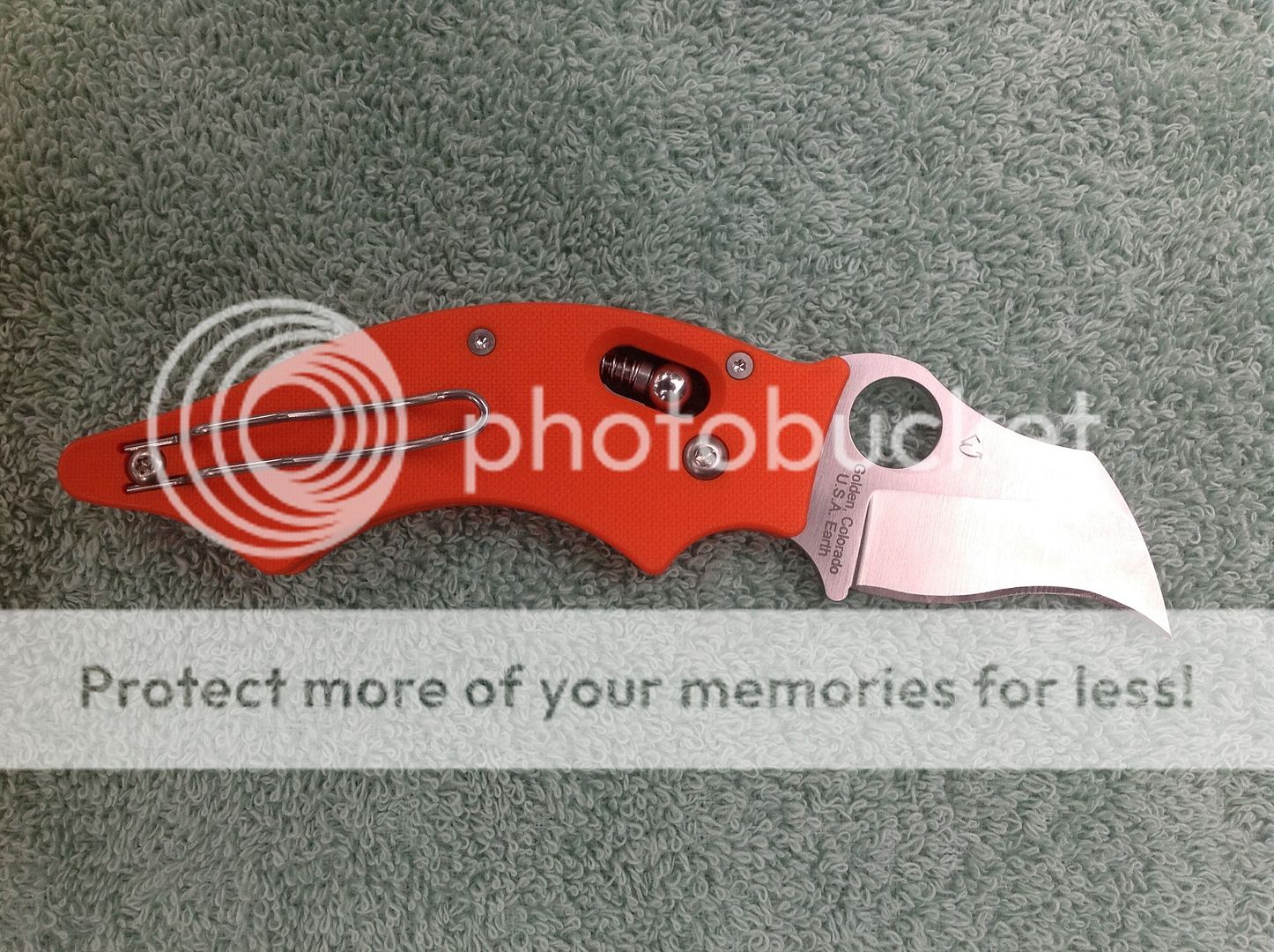 2) Spyderco Dodo orange, purchased by me BNIB last week from a trusted BF member. Carried a couple of days, cut open the tape on a box and a couple of envelopes. VERY lightly touched up on the Sharpmaker fine rods, only. Box, etc., included.