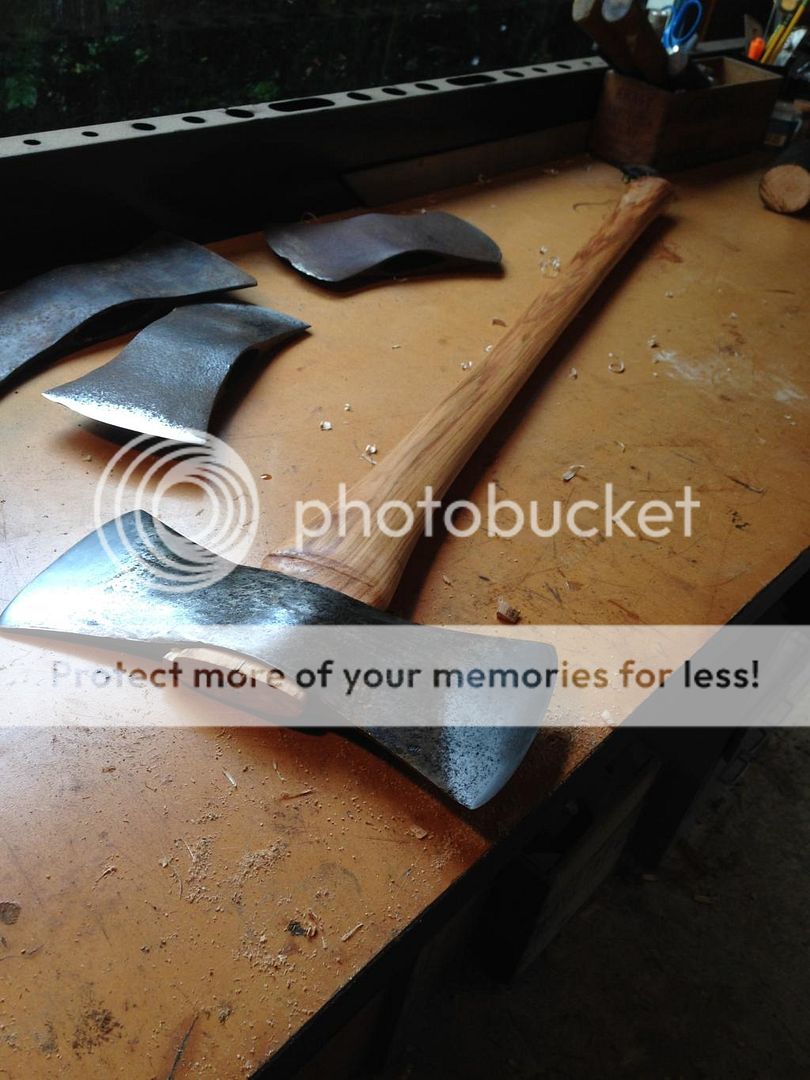 32" house handle: octagonalized. The grain looks decent with minimal run-out. I believe it's entirely heartwood. Maybe someone can enlighten me as the pros and cons of an all heartwood handle. Kind of pretty without anything done to it. Was thinking of using it but was wondering if there is anything I should know before shaping.