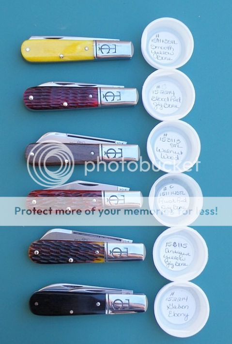 Well, here I have six more GEC #15 TCs in a variety of baldes and handle materials for your consideration. All are in like new condition never used, carried or sharpened. Most if not all of these are very difficult to find in this condition because of very low production numbers. They come with the tube and original wrapper.