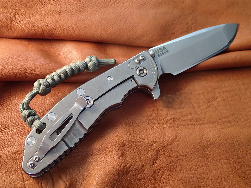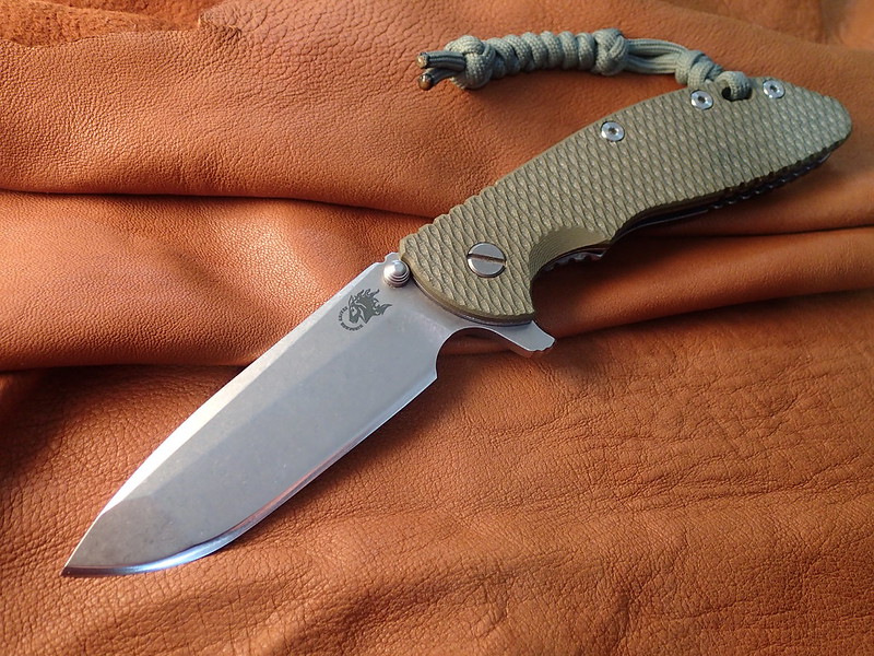 Hi Blade Forums! I have two knives to offer for sale today. First unconditional "I'll take it" posted here or by PM gets it. I reserve the right to sell to whoever I want and for any reason, without explanation. Prices include PayPal fees (NO GIFT!) and USPS insured priority shipping in the USA. Only selling to Continental US, AK & HI. Canada considered but will need to add for shipping - PM me for estimate. Please look carefully at the photo's; this is exactly what is being offered - no more, no less! Any questions, please don't hesitate to ask! My PP & email address is sam(at)mysdnc(dot)com.The Only Trade Considered is an XM24 Slicer for my Spanto - nothing else. Any reasonable offers will be considered, low balls will be ignored.Hinderer XM24 Spanto - It's seen light use, mostly office duty opening letters and shaving down the odd campfire stick. VERY smooth, perfect lockup and typical light Hinderer detent. I resharpened it to a mirrored convex crazy sharp edge - you won't be disappointed. I'm sure there are light scuffs all over from pocket carry and use, but the stonewashed finish hides it so well I can't tell - you be the judge from the photo's. Comes with original box, baggie and tactical peanuts. $630.00 SOLD!!CRK Small Regular Unique Graphic Raindrop Damascus - Sorry, no birth card on this one, although the scale is stamped with B98. I purchased this from the original owner. He told me he never kept boxes, and the knife lived in a glass display case for years. Since I've owned it, it has stayed in a CRK leather slip sheath in my safe. There are a few very light storage marks on the display side (photo won't capture), but no other defects that I could find. The edge appears to be original, although doesn't feel very sharp to my fingers. I would rate it an easy 99% - a trip to the spa would certainly make it perfect. I own some great CRK's, although this is one of the nicest I've ever had. Given the age and rarity, I'll never carry it - and I'm too paranoid to put it in a case on the wall. Although I originally purchased the knife alone, I'll include a CRK leather slip sheath and a CRK box. Asking what I paid: $750.00 SOLD!!