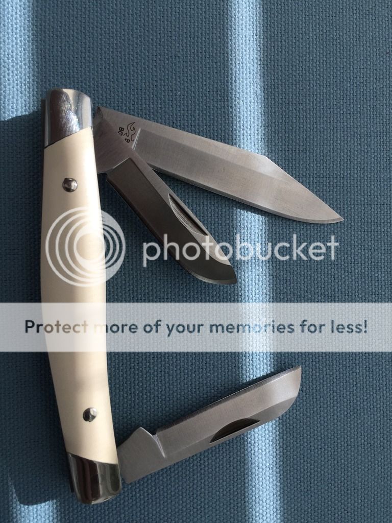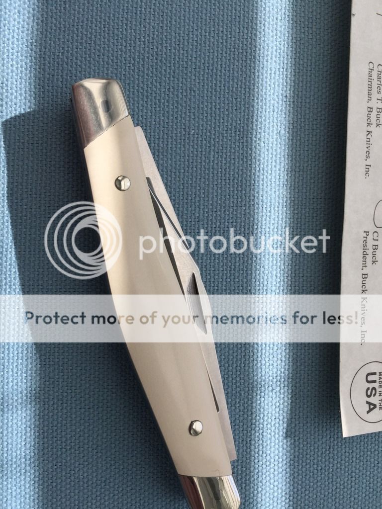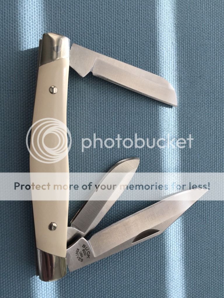 SPF - Buck 301 Stockman Model # - 0301IVSCC-B. I believe the previous owner pocketed this one a few times, but I haven't. Great knife, just don't carry it. One of 100 made with ivory micarta handles and BG-42 steel. Light pull on the blades but solid knife. Comes with box, certificate, and leather sleeve. Asking $100.