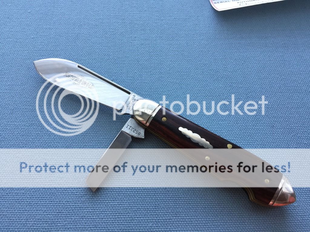 I am the second owner. Has not been carried or used. I believe the EO notch and coping blade were modifications to the original knife. Asking $140