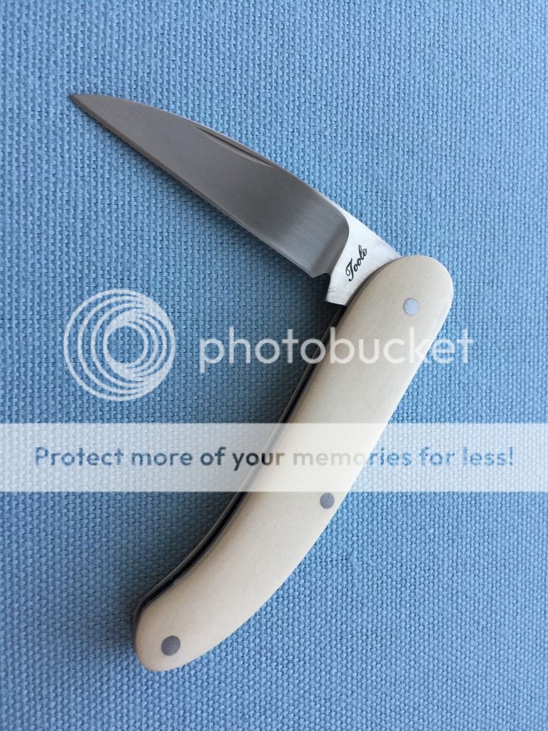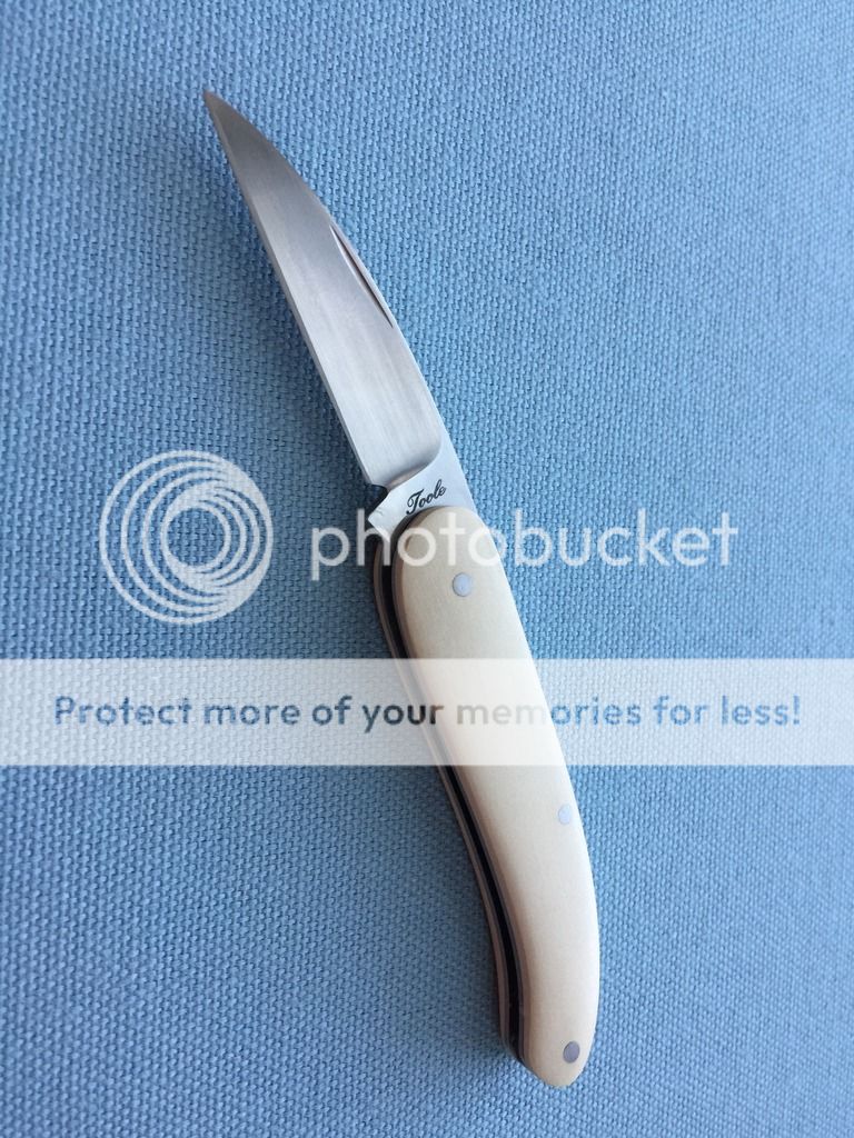 SOLD - Custom Toole slip joint - Not the original owner and don't know that much about this one. Received it in a trade and haven't carried it. It's a small knife with a great little blade. Not sure the steel or the handle materials. Comes with a padded case. Asking $150.