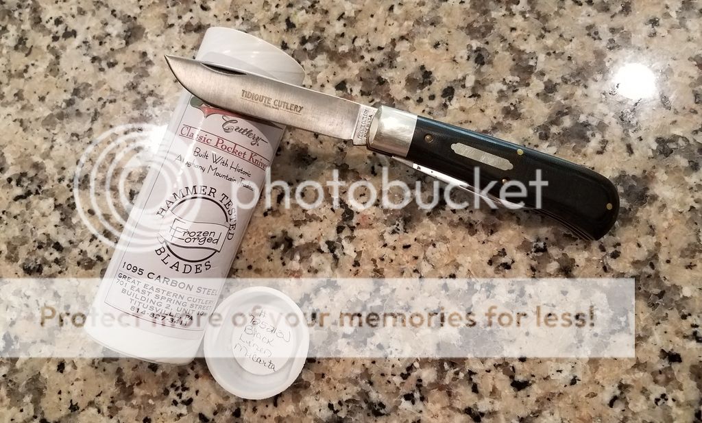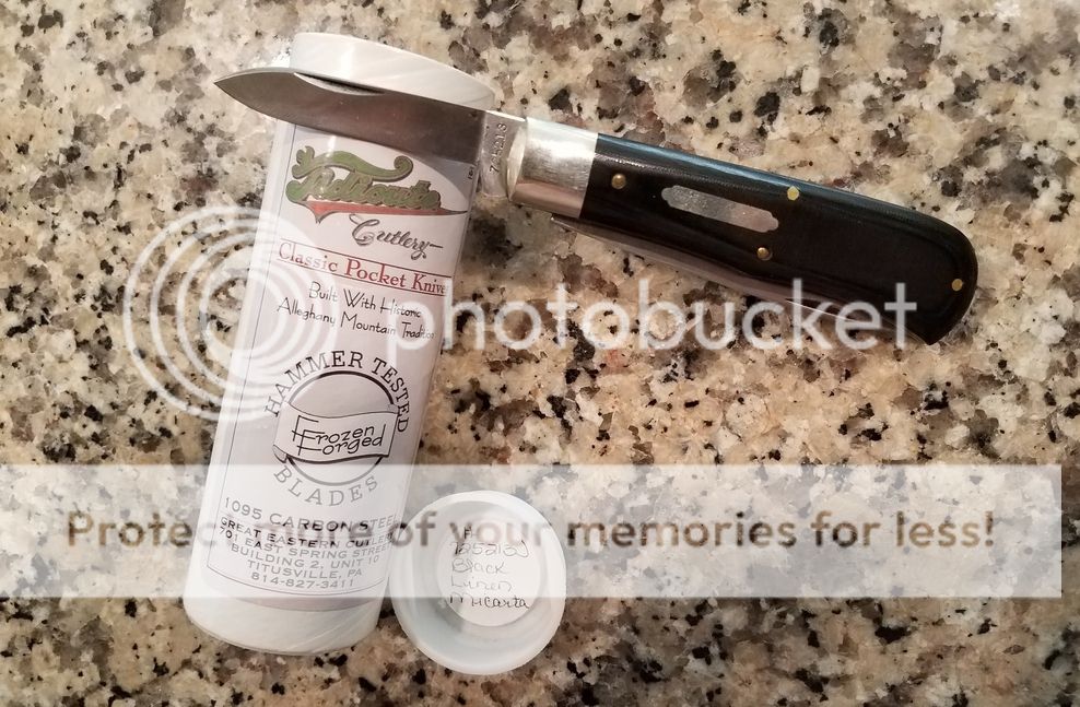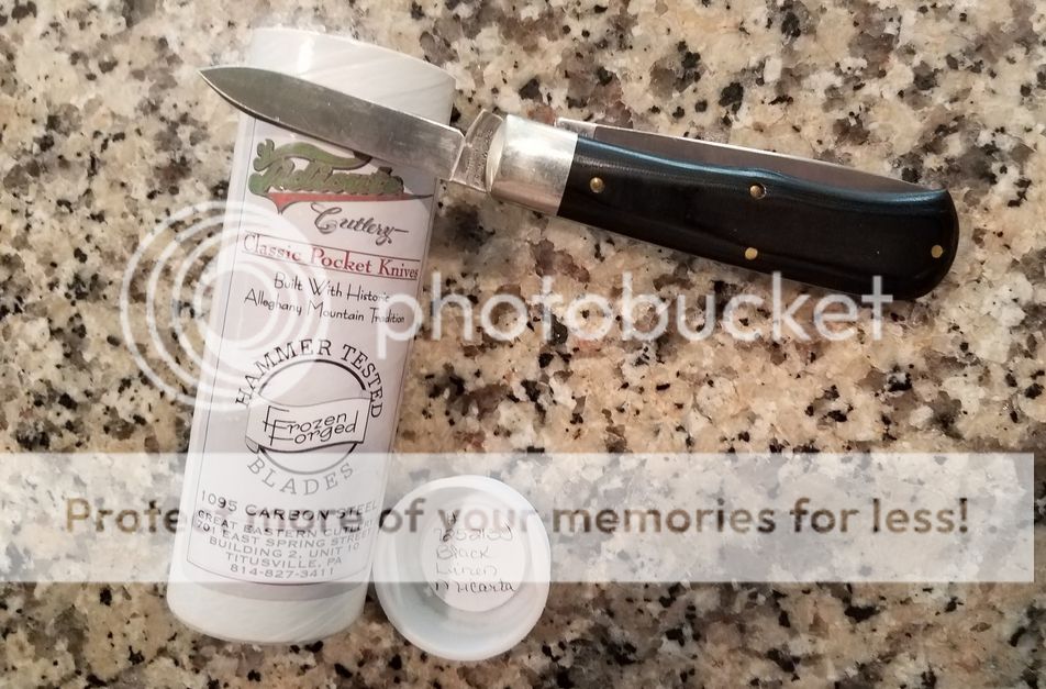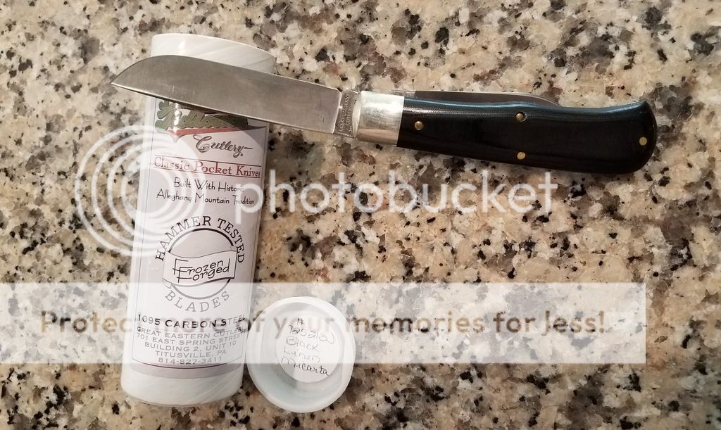 GEC #725213J Black Linen Micarta- I carried this for about a month and is developing a patina. Includes tube with wax paper
