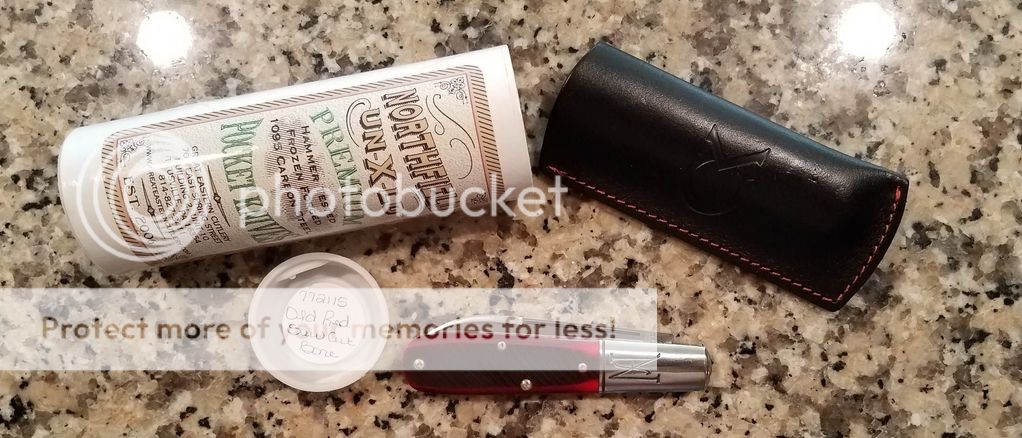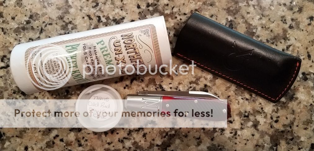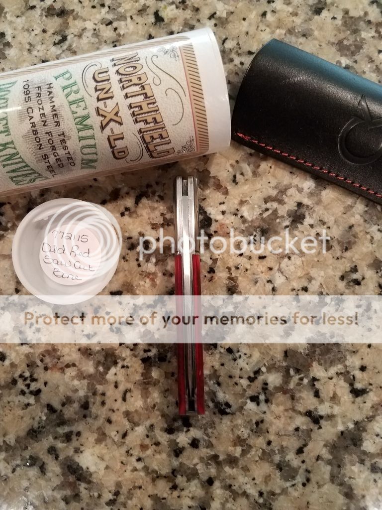 GEC #772115 Old Red Saw Cut Bone – Might have carried it in the included slip pouch twice; excellent condition! Includes tube, wax paper, and Collector Knives leather slip pouch.