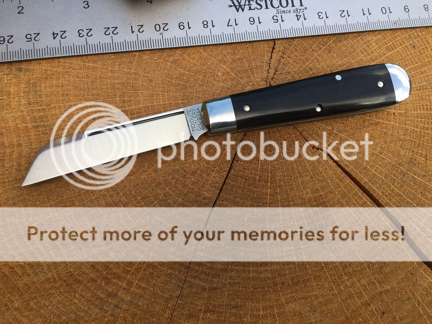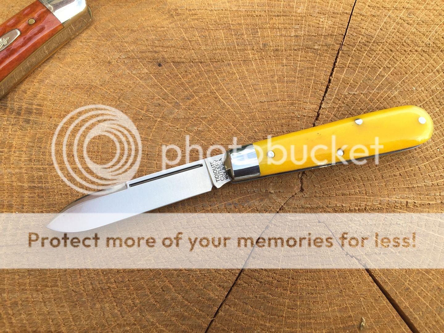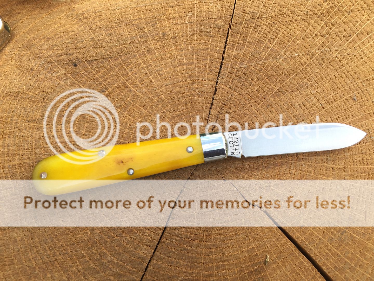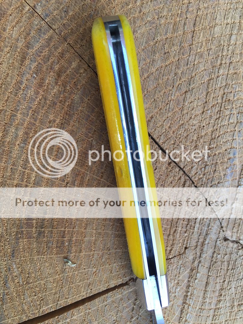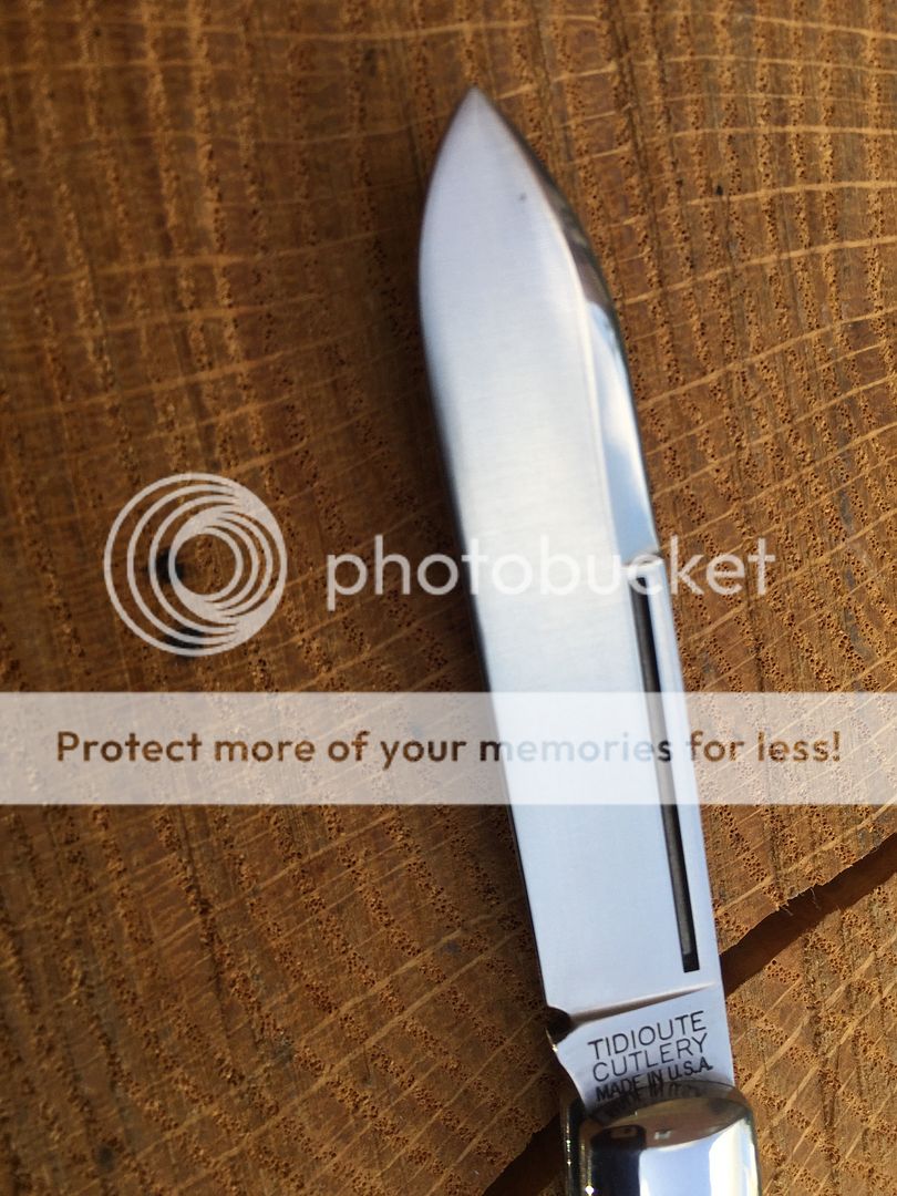142116 Tidioute Lick Creek boys knife in smooth rotten banana bone. This was an SFO for Old Hundred collectibles. One micro speck on the main and there is a small flaw on the liner from the factory. I couldn't get it in the pics. Tube and paper included.