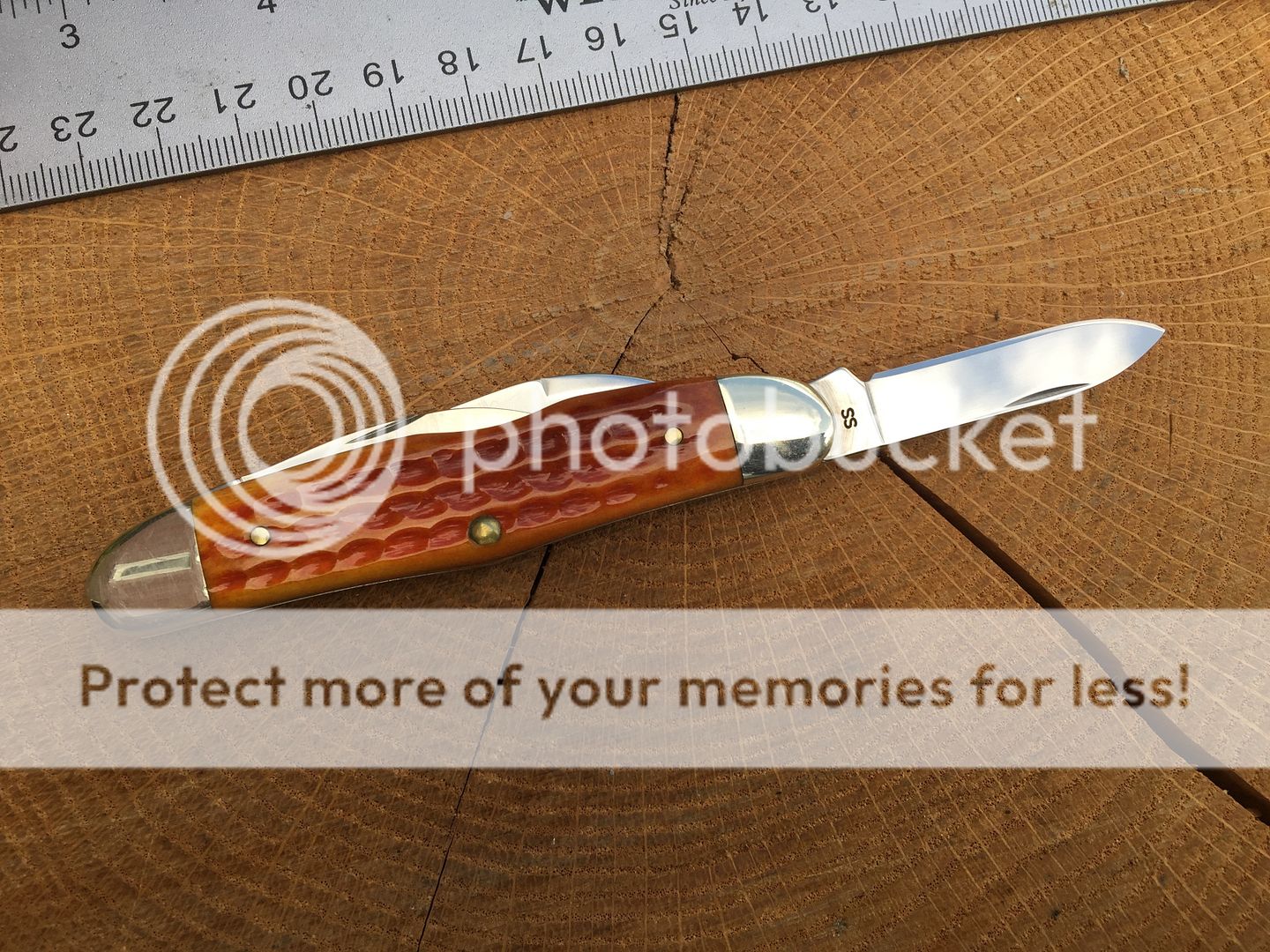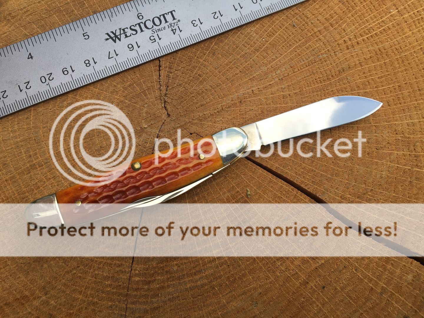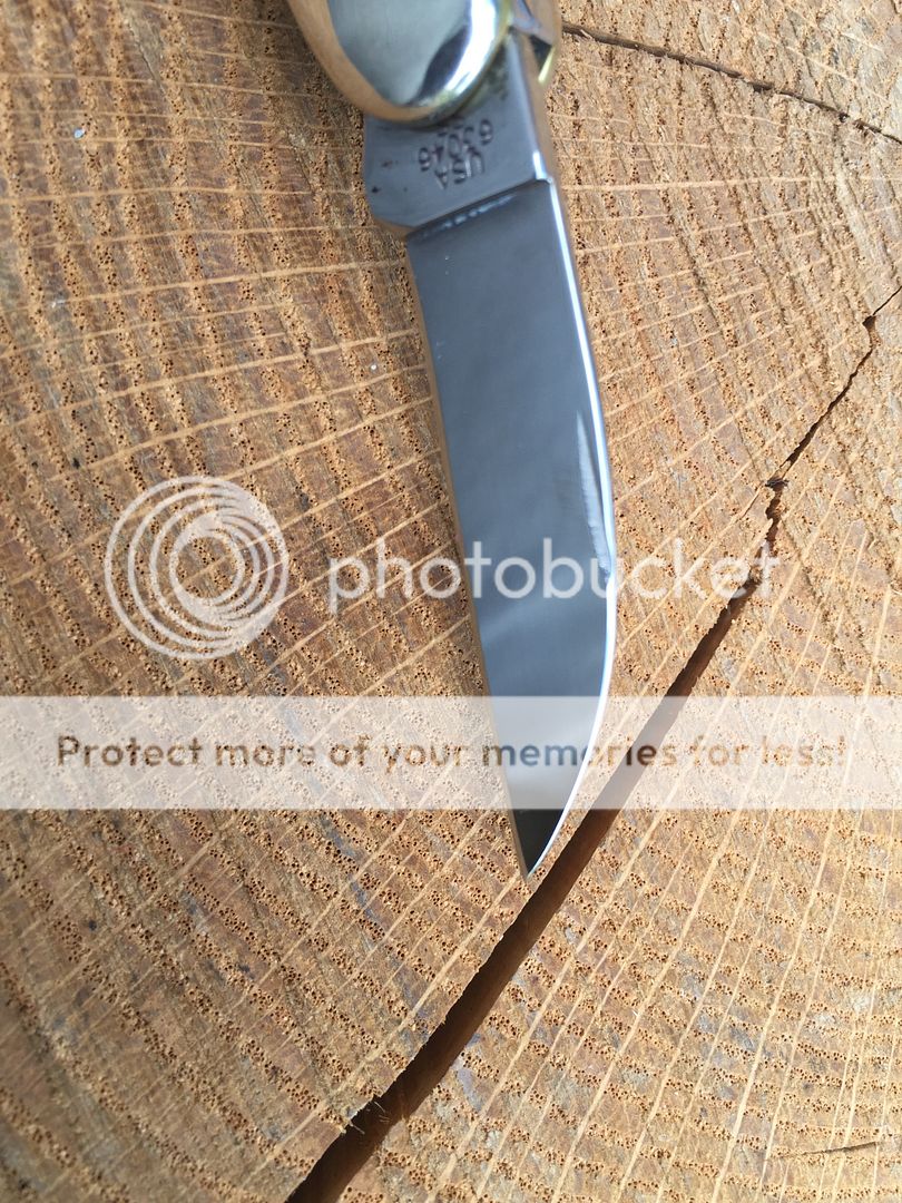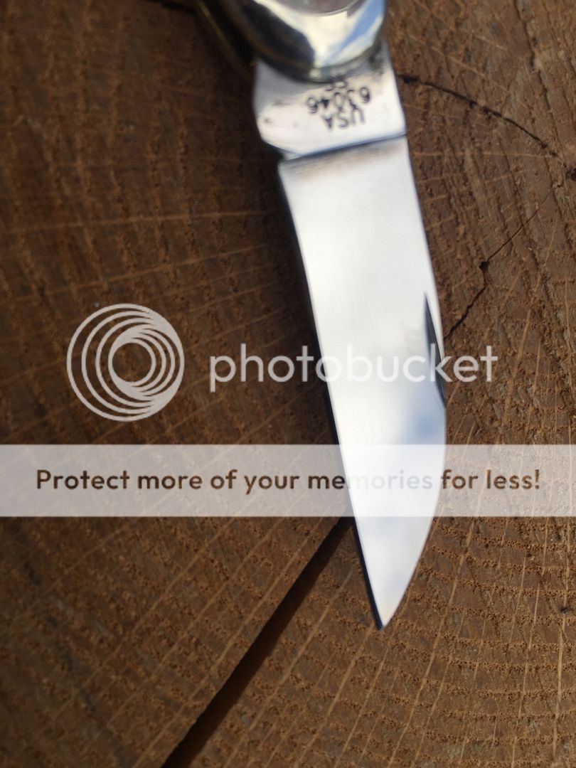 Case 63044 SS humpback stockman orange bone. This one has the sheepsfoot modded into a wharncliffe by the previous owner. It's nicely done and enough of the nick remains to easily open the blade. All three blades have run marks. No box