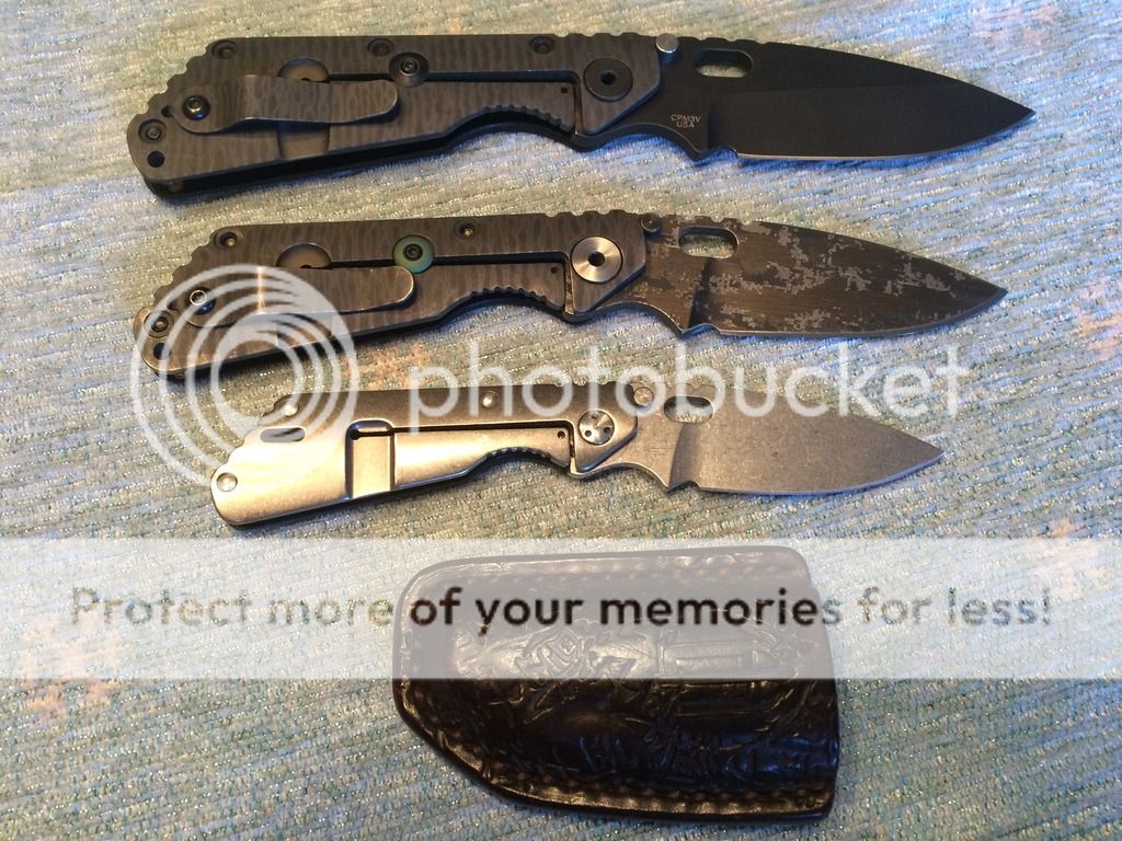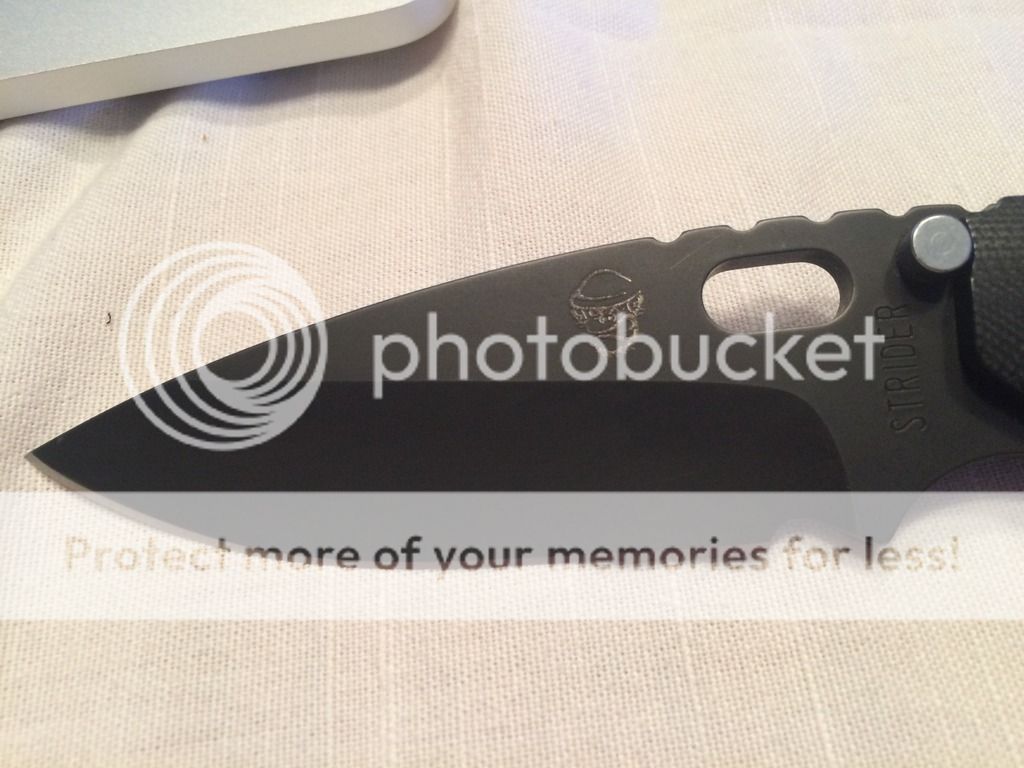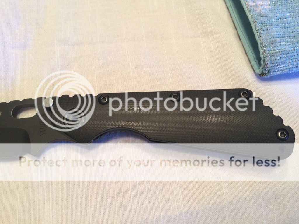 3. Strider PT cc black with tumbled titanium lock side. Has been carried but only shows wear on lock side. Few small scratches from rubbing sheath.