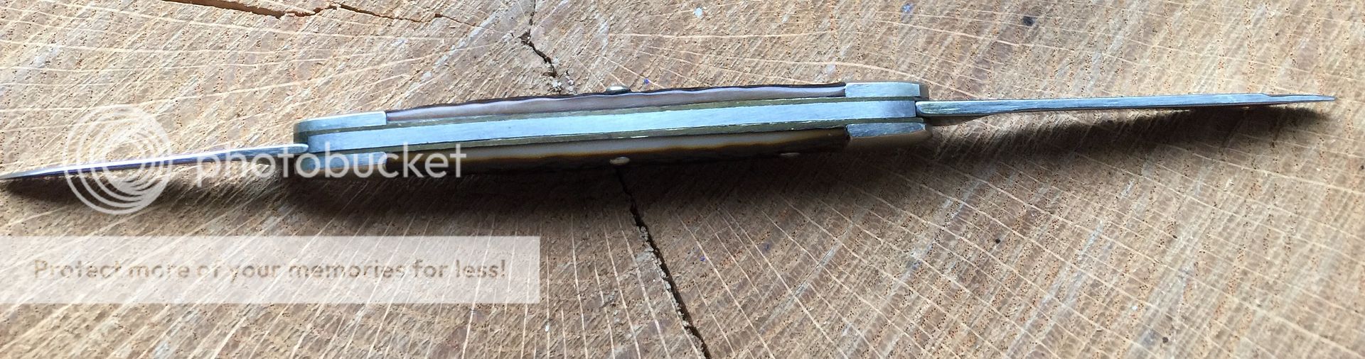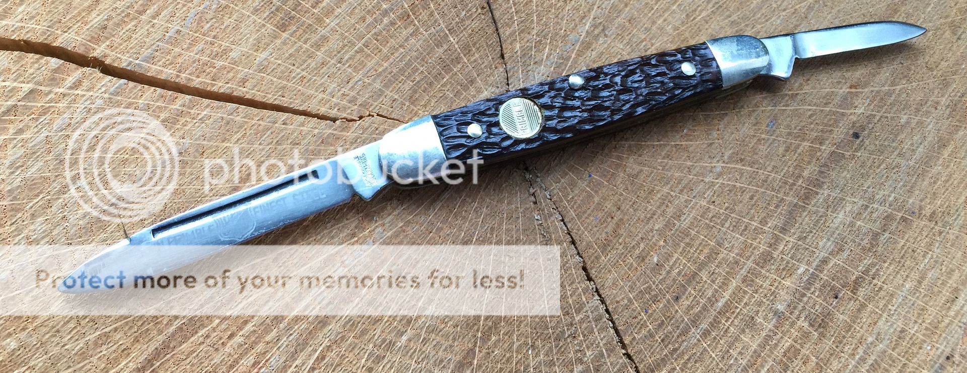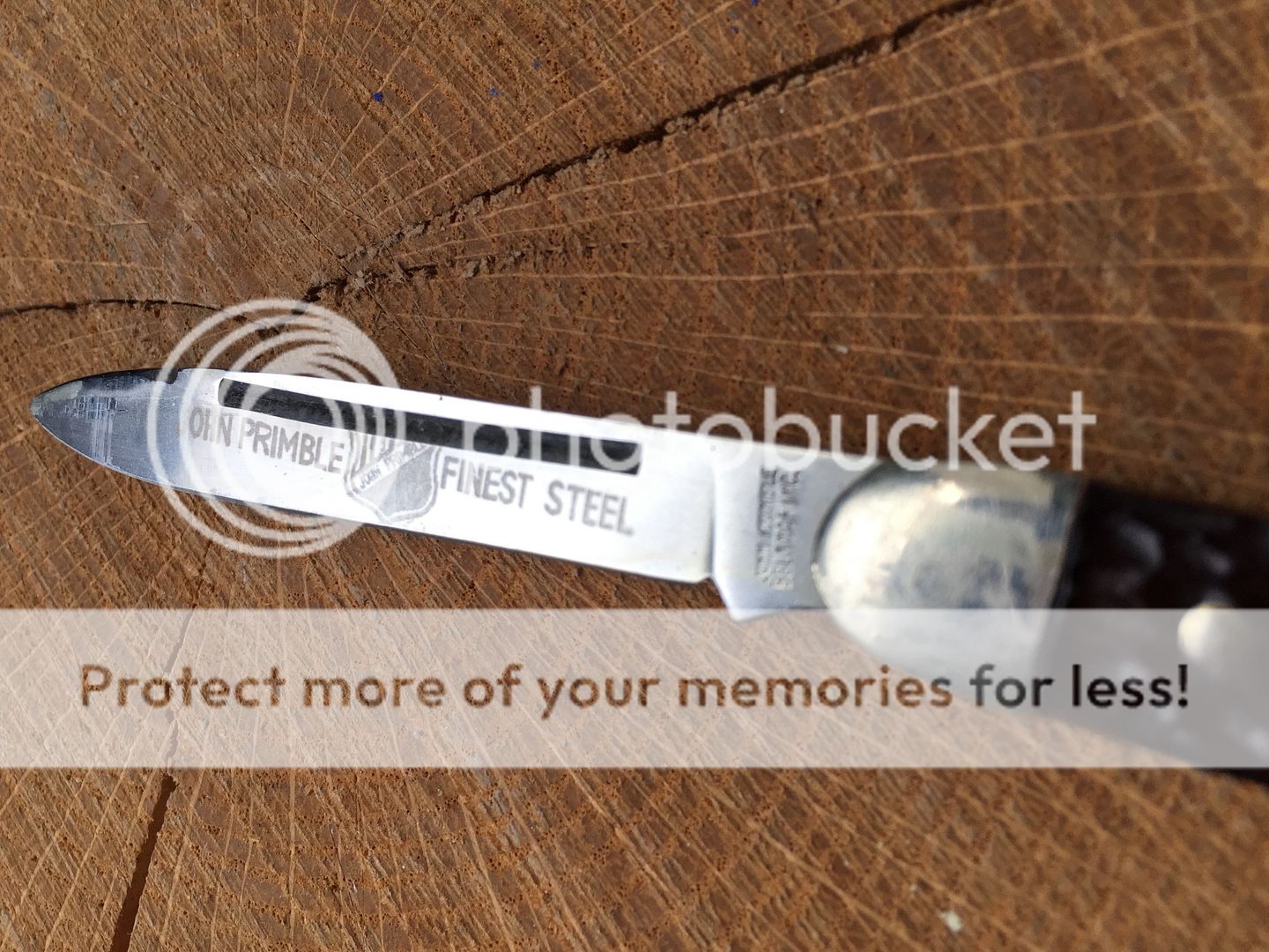Nice little own knife. Some marks from storage. Could use a good sharpening