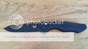 2. Benchmade Contego (Sold)- Like the military this knife has been carried and not used. The cpm-m4 blade is black coated with a plain edge, and it has the standard black g-10 handles. The action is as to be expected from an axis lock. The centering is good, and the lockup is good with the exception of some slight side to side blade play as is common with axis locks. It will come with the box and the original packaging. The only wear on this knife is on the pocket clip, but benchmade will send you a new one for free.