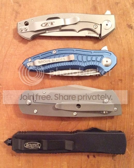 These three folders and one OTF are in like new condition. Never used, carried or sharpened. They have ALL been siting in the knife safe untouched and need to go. First to post "I will TAKE it" in this sales thread gets it. No international sales and NO Trades. Payment by PayPal only. The price shown is the total BUYER price. I will cover the PayPal fees and USPS Priority tracking shipping costs. Additional insurance is available if paid by BUYER. Email me directly at gunmanok@aol.com with any questions. Please understand that a questions asked does NOT insure you will get the kife in question if someone posts they will take it. THANKS