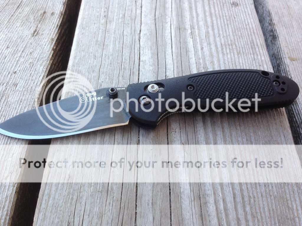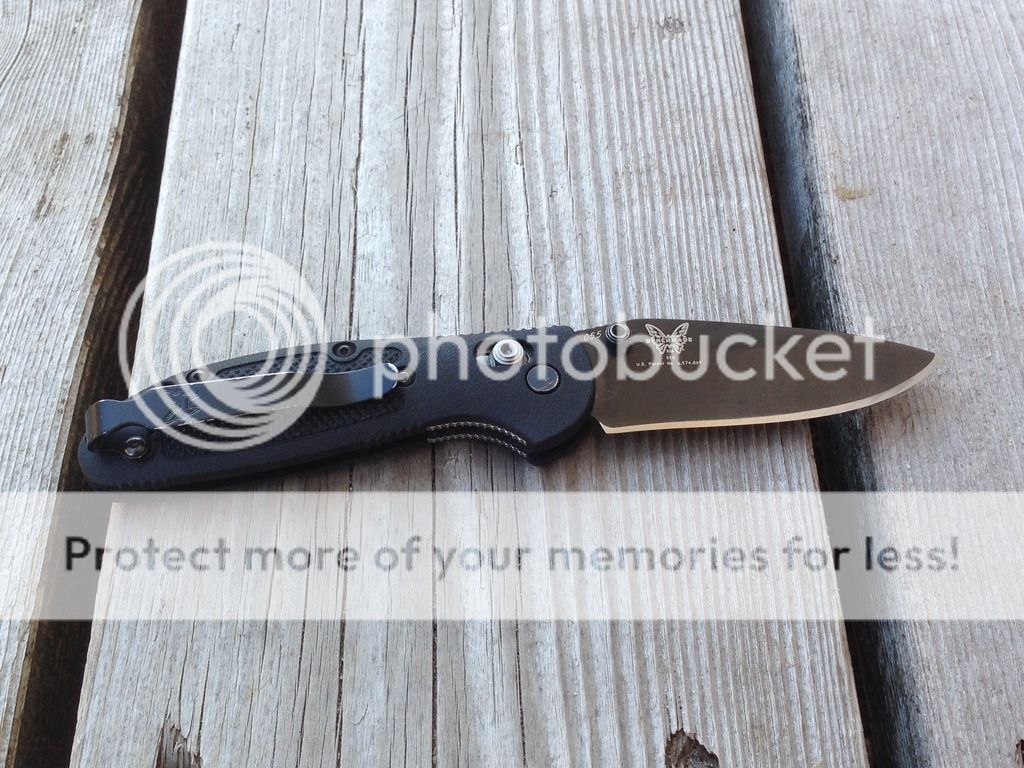 Second is a Benchmade Mini Ritter Grip in M4 blade steel. I was really on the hunt for another Ritter Grip and picked this up off the exchange. It has the M4 steel and black ritter blade coating. This knife was reprofiled by the previous owner and is hair popping sharp. Somewhere along the lines a previous owner shaved off a little of one of the thumb studs while sharpening. This is purely aesthetic and does not effect the performance in any way.