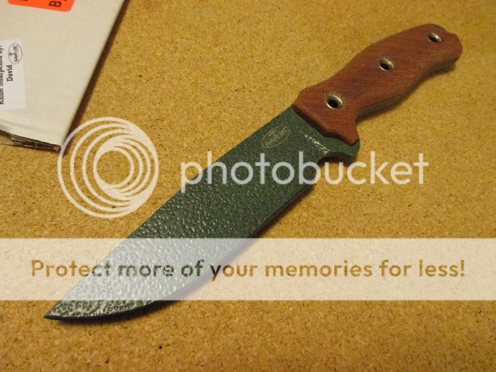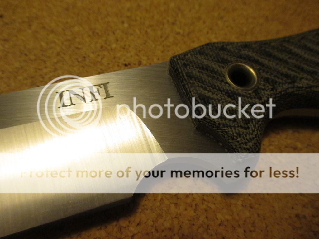 INFI RMD with Custom Logo and sheath - $305 - BIG Satin w/ Black Canvas - Comes with Spartan nylon sheath (has soft material on inside on sheath) - INFI - Custom "INFI" Logo - Never used, may have very light marks from sheath (won't seperate, I don't need the sheath, I'm including it to help it sell faster)