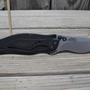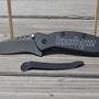 Ken Onion Design. All matte black DLC model. Smooth speedsafe, centered, slight hint of side to side play when torqued hard. Looks like it has ridden in my pocket at some point, but the blade is flawless and sports the untouched factory edge.