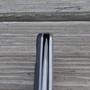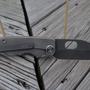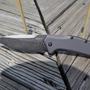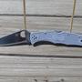 New without box. Coyote G10 handle and gray PVD coated D2 blade. Tumbled Titanium frame, 3D machined titanium pocket clip. Very good looking polish and even sharpening on the stock edge though I have not tested it for sharpness. Centering is perfection. Lockup is better than others I have seen at about 30%. Action is smooth and lockup does not allow play in any direction. Just an overall beautiful specimen. I know most people rave about the comfort of these knives, but it just doesn't fit my hand right, so onward it goes. I don't at all regret buying it handle and see for myself. Impressively built.