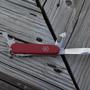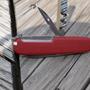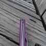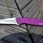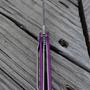 Purple Aluminum Handles. Has been sharpened to an acute 16 DPS edge without micro bevel to suit the type of use this knife is intended for. Sharpening choil added, the clip side of which crept up the blade just a touch. The sharpening job is not perfect but the knife is very sharp. Action, centering and lockup cannot be faulted. Other than the sharpening, the whole knife is pristine. Made in the USA.