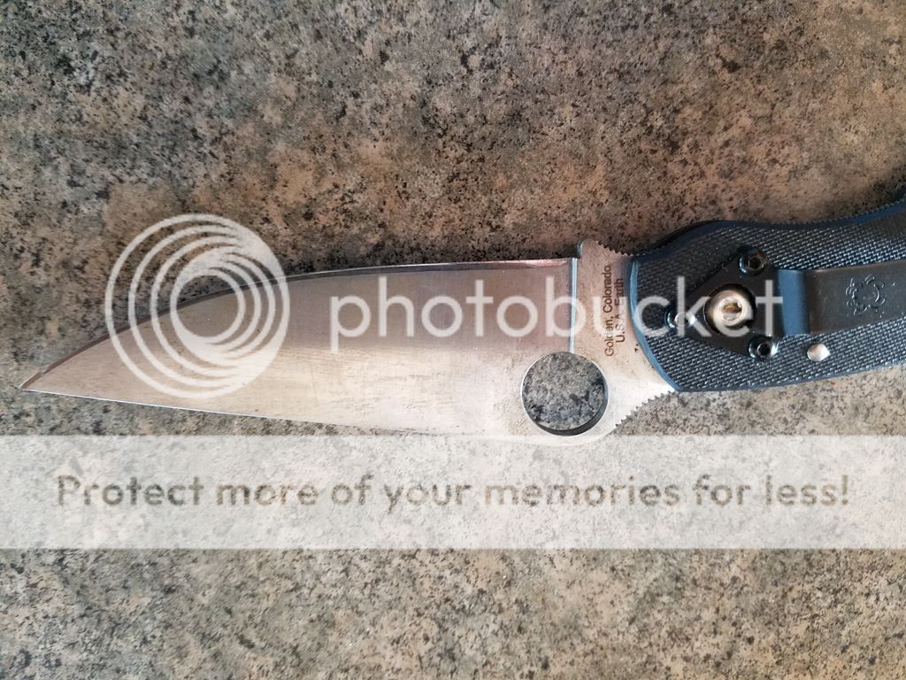 Large Espada carried and used and shows, still has good lockup ect. Bevel is wider on one side from my first Edge Pro attempt, still sharp.