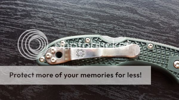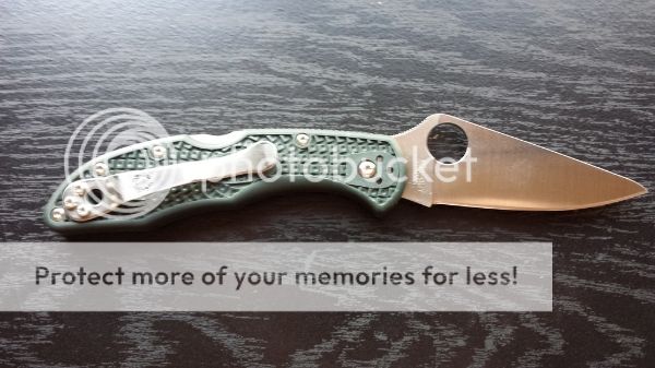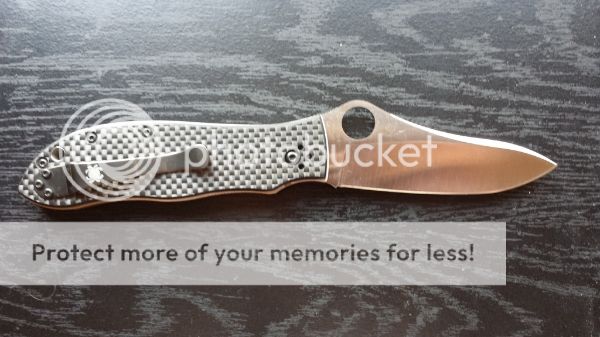 Spyderco Delica ZDP-189- I have also carried and used this knife, but the amount of use it has seen is very small. The action is pretty good for a lockback, as is the centering. There is some slight bladeplay, which is pretty standard in my experience with the FRN Spydercos. There is a very small amount of sharpie on the front of the blade from when I touched up the edge on a sharpmaker and drew on the secondary bevel. I have also sanded the black finish off of the pocket clip.