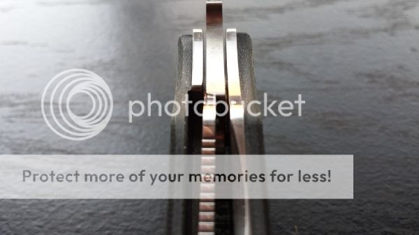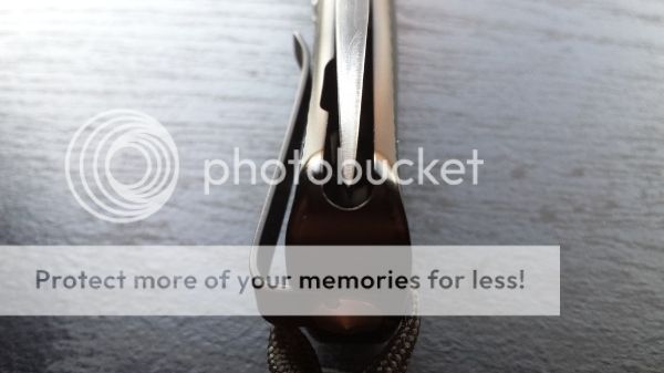 Lionsteel SR2- This is obviously a heavy user. I bought it recently from a fellow member here who reprofiled the edge and sanded off part of the black finish. Even though these things make it incredibly ugly, it is still very functional. The reprofiled edge is very sharp, and the lockup and action are both pretty great. I would be tempted to keep this as a user if I didn't already have another SR2. This is a good way to check out a Lionsteel for a great price.