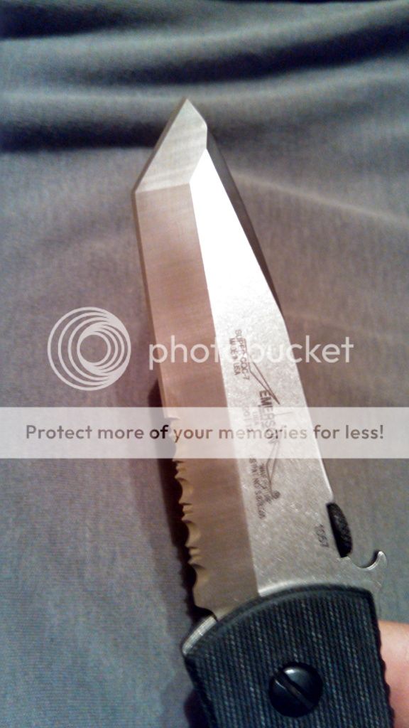 Up for sale today are my Emerson Super CQC-7. It comes with box, plastic, paperwork and sticker. It has been lightly carried (more carry than use) but is in excellent condition. The factory edge will shave arm hair, but could be touched up. There are no dings, rolls, or scratches. Forgive my crummy cell phone pics, if you need better shots, let me know and I will send you more. The prices include PP (please use G&G) and shipping fees. Email is the best way to reach me. Thanks for looking
