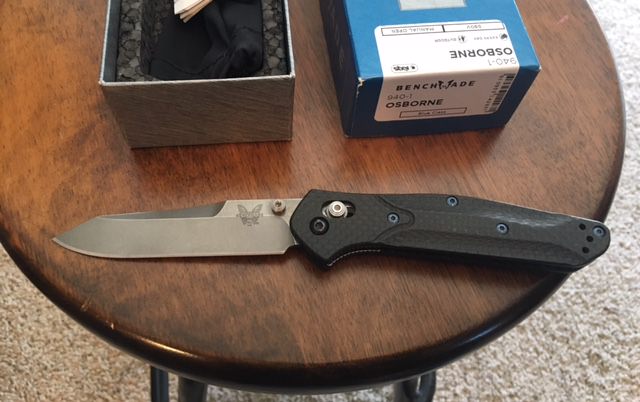 2) 940-1 - (SOLD). The top of the 940 family. Carbon fiber scales, S90V blade steel, blue stand offs. Prior owner installed blue titanium screws. Owner claimed never carried or used, and I don't disbelieve him. I've carried it once or twice myself, but haven't opened more than 2 or 3 packages. Original box and baggie included. $Sold